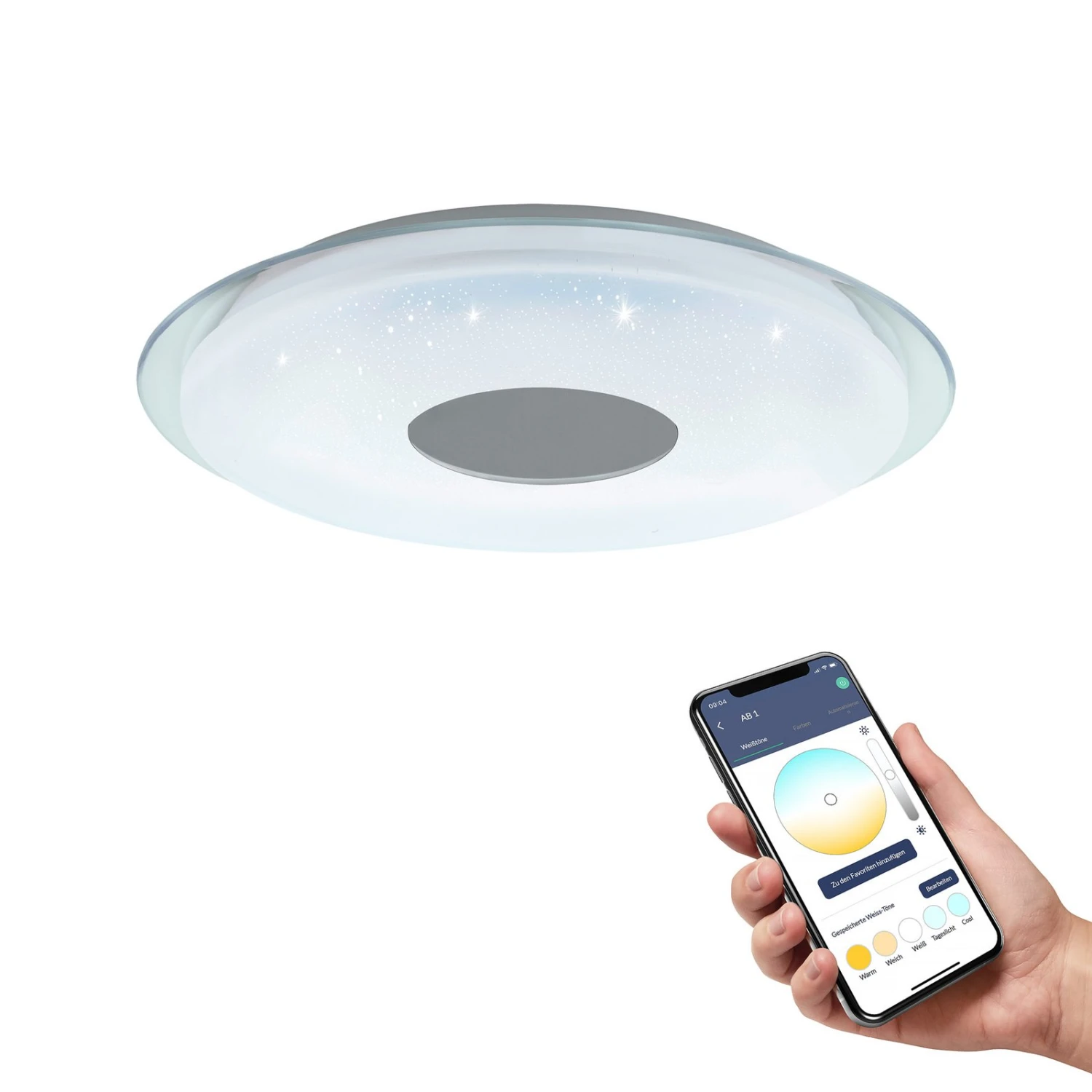 Con effetto cristallo – Plafoniera Lanciano-Z LED, controllabile in modo intelligente