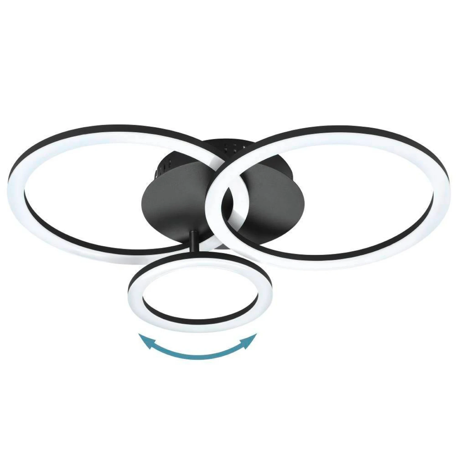 Plafoniera LED Parrapos-Z controllabile composta da tre anelliTre anelli di dimensioni diverse costituiscono le sorgenti luminose di questa plafoniera. Un telaio in acciaio nero funge da cornice, su cui sono installati i LED controllabili sotto le coperture in plastica. Con l’aiuto dell’app gratuita AwoX HomeControl, controllare l’apparecchio è un gioco da ragazzi: oltre a regolare il colore e la luminosità della luce, è facile creare vari gruppi con più apparecchi, impostare orari o simulare la presenza. Anche senza accesso a Internet, è possibile effettuare varie impostazioni con un telecomando disponibile separatamente.Funzioni / Compatibilità:- controllabile con l’app gratuita AwoX HomeControl- compatibile con i sistemi di smart home di altri produttori che utilizzano ZigBee 3.0- possibilità di connessione diretta con Amazon Echo e Google Home- maggiore portata grazie alla rete Bluetooth aggiuntiva- possibilità di controllare fino a 50 apparecchi o lampade contemporaneamente- compatibile con tutti gli articoli della serie EGLO connect-c Bluetooth- controllabile con un telecomando adeguato anche senza accesso a Internet (vedere accessori)