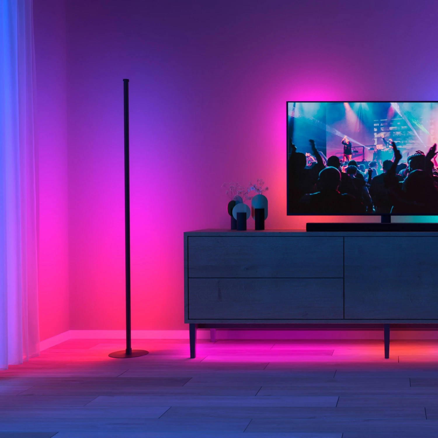 Lampada da terra a LED colorata, controllabile in modo intelligente, per sfumature di colore uniche Questa lampada da terra intelligente si fa notare in termini di design estetico dell’illuminazione. Il gioco intelligente dei colori è creato principalmente dalla possibilità di progettare i singoli segmenti in modo indipendente l’uno dall’altro. Che siano colorati, cangianti, lampeggianti, con effetto fiamma, dimmerati o addirittura con scene preimpostate, non ci sono praticamente limiti. Inoltre, in modalità musica, la colonna luminosa si adatta al suono degli impianti hi-fi, dei film, dei giochi ecc. tramite un microfono, adattando la luce a questi suoni e creando sequenze di colori suggestive.