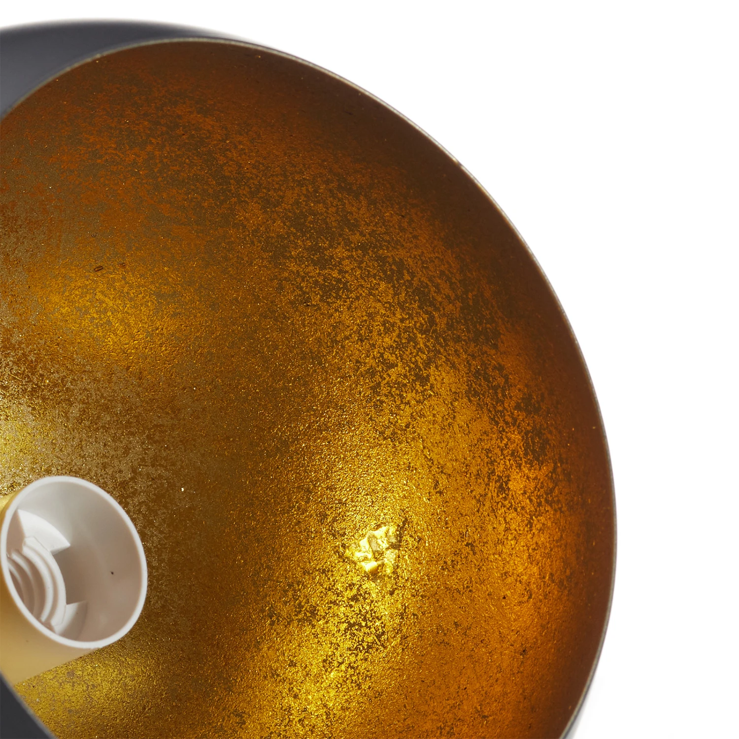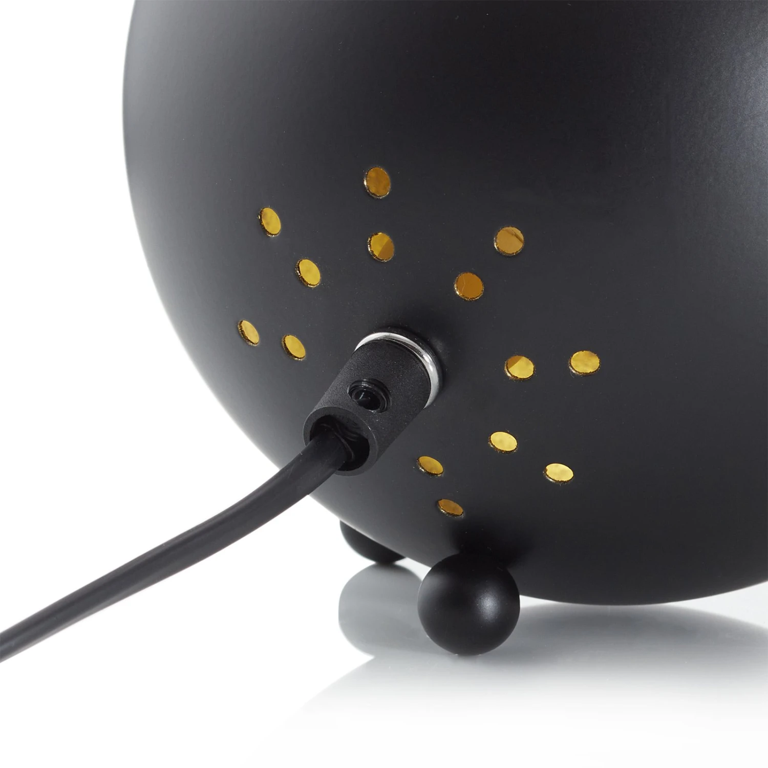 La lampada da tavolo sferica Billy in una nobile combinazione di coloriLa lampada da tavolo sferica Billy raggiunge una nota meravigliosamente decorativa nel soggiorno anche quando è spenta, perché il nero opaco all’esterno e il paralume lucido all’interno, visibile attraverso l’apertura del paralume di forma altrettanto rotonda, rendono la lampada da tavolo un oggetto d’arredo distintivo che completa meravigliosamente lo spazio abitativo moderno. L’interno del paralume color oro riflette la luce in modo piacevolmente caldo, creando un’atmosfera invitante nell’ambiente circostante. Con interruttore a cavo.