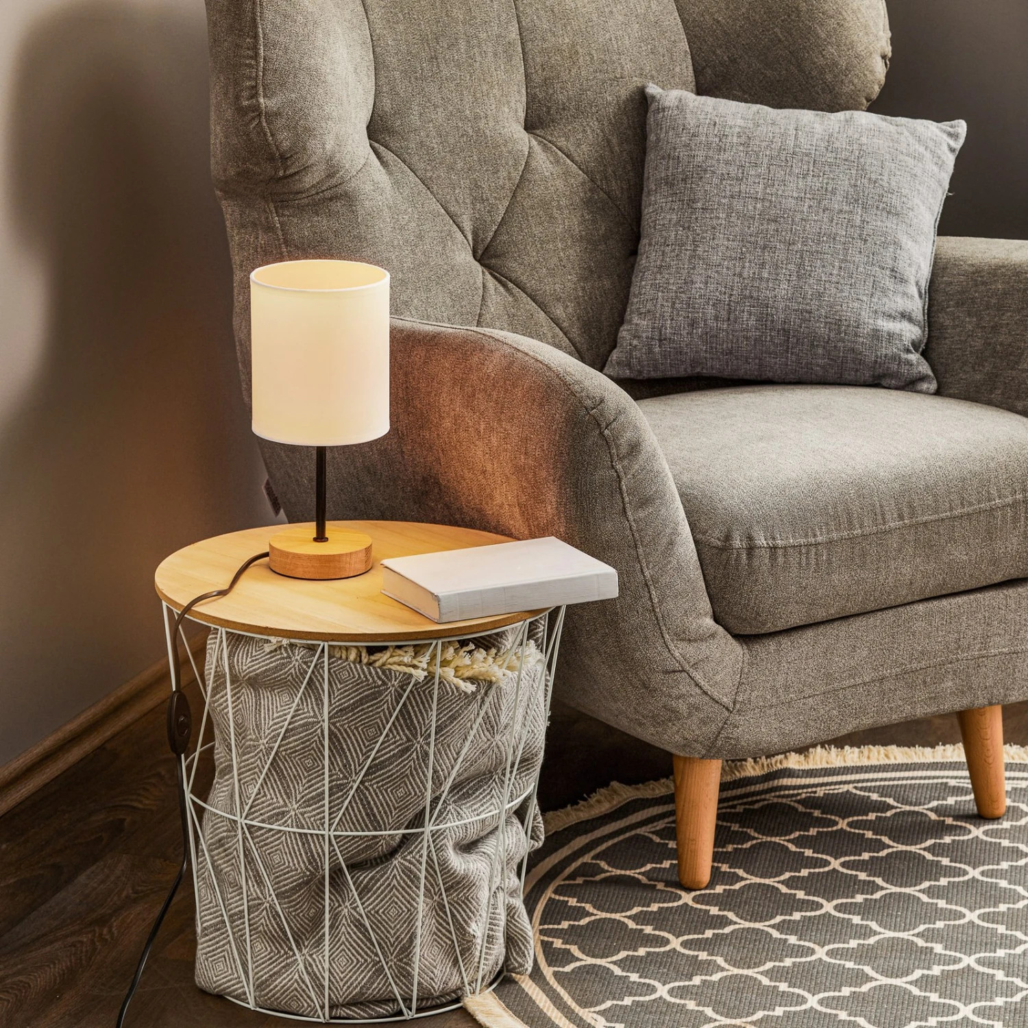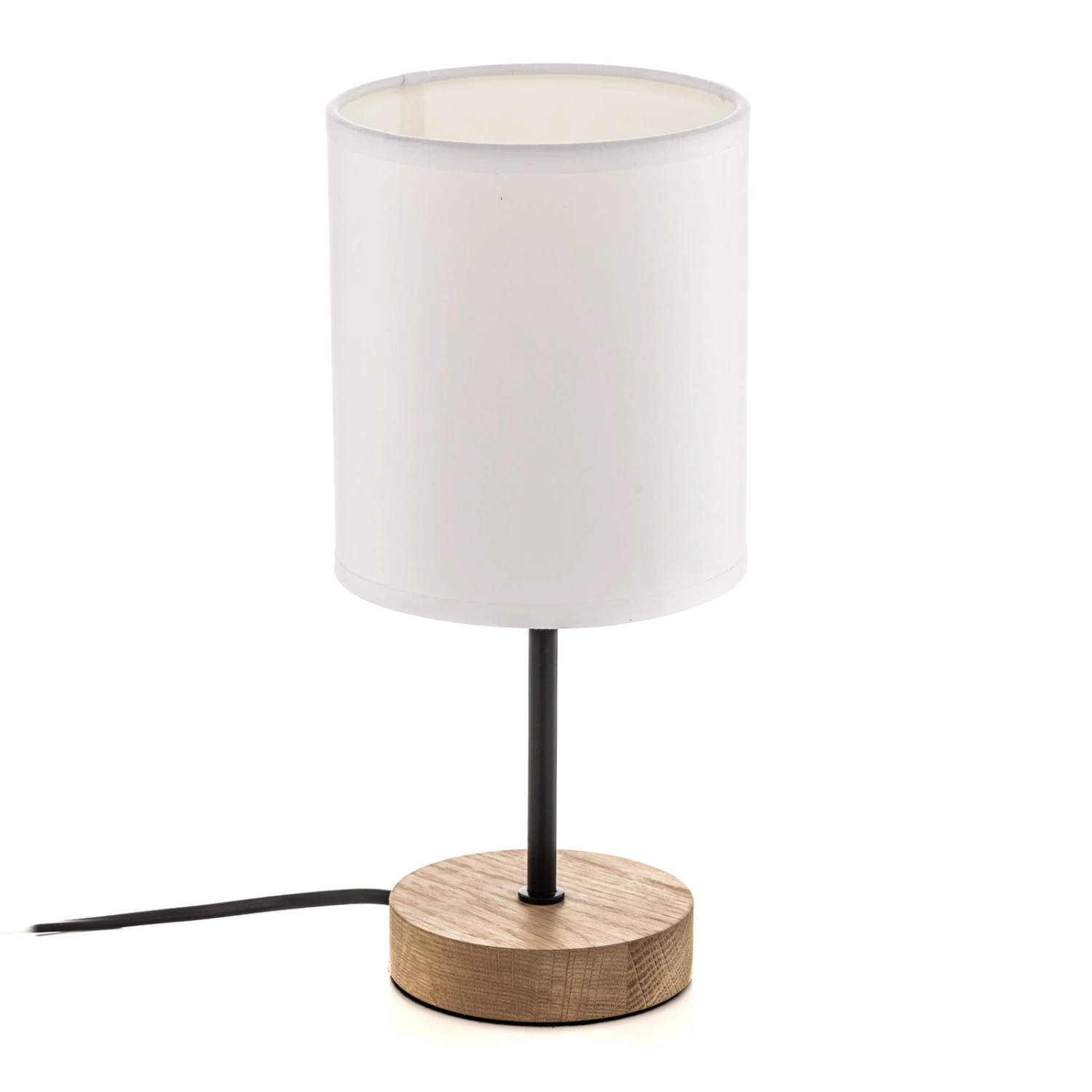 Lampada Da Tavolo Corralee, Legno E Stoffa Bianco