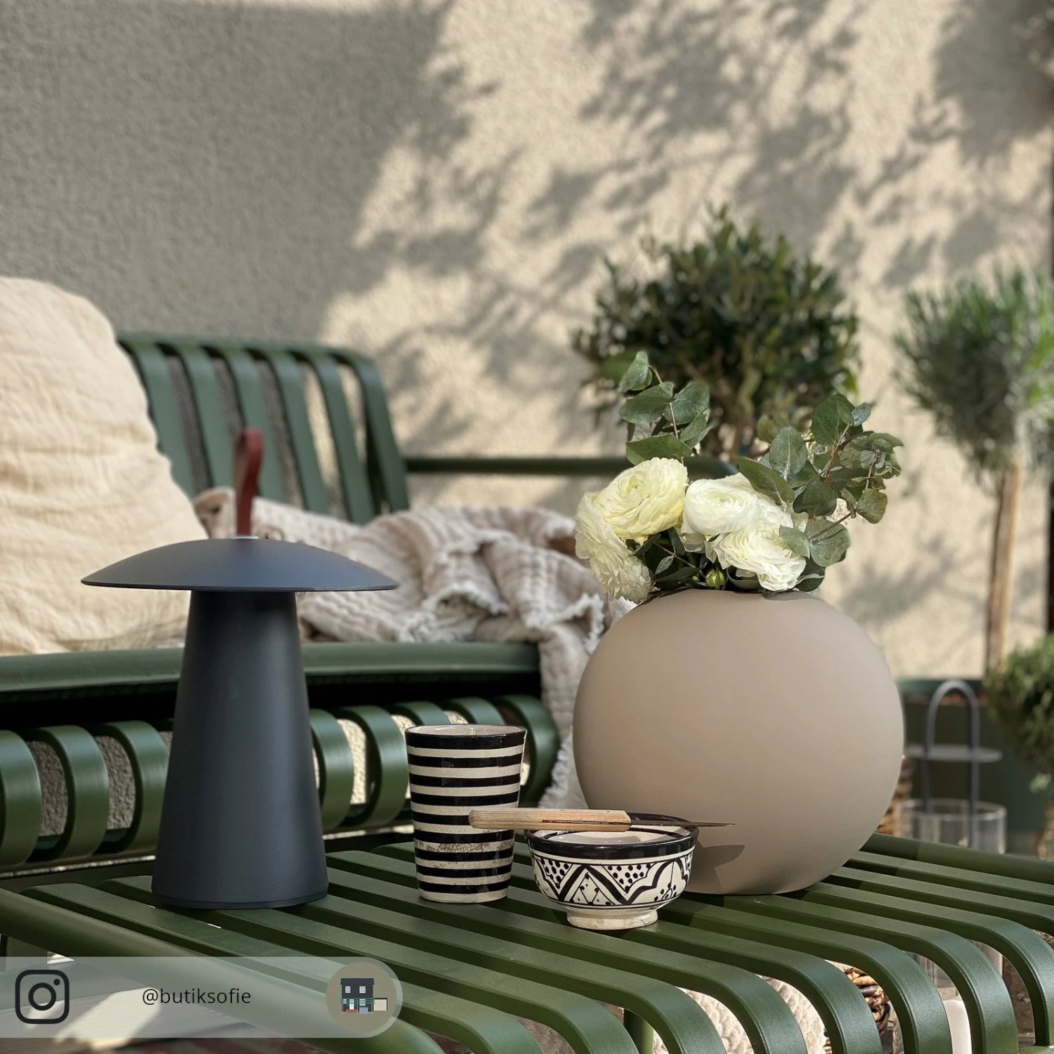 Una bellezza luminosa in una forma che ricorda un fungo – questa è la lampada da tavolo La Donna, alimentata a batteria, che può essere utilizzata sia all’esterno che all’interno. La batteria ricaricabile integrata può essere ricaricata entro ca. 4,5 ore con il cavo di carica fornito in dotazione, in modo che la lampada possa poi brillare fino a 80 ore a seconda dell’impostazione della luminosità.