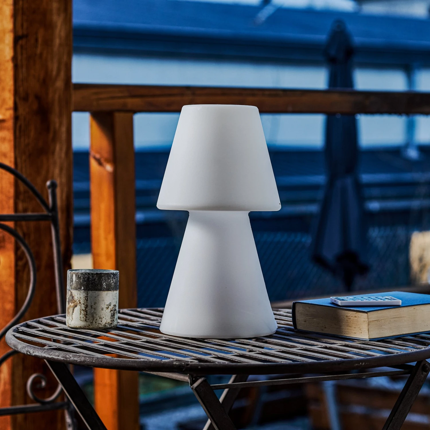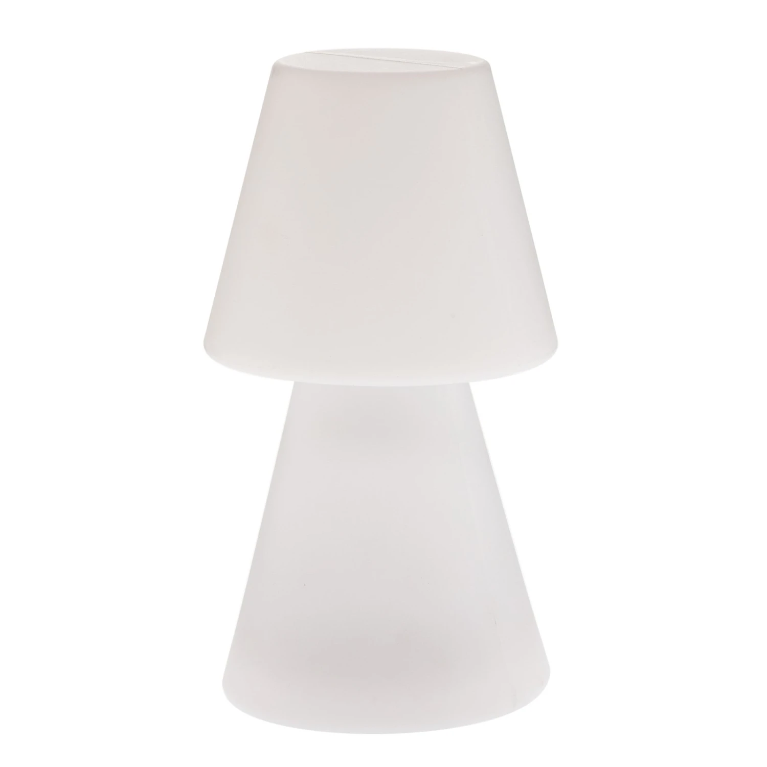 Lampada da tavolo Lola 30 LED bianca con batteria ricaricabile La lampada da tavolo LED Lola 30 è realizzata in robusta plastica di polietilene. Il materiale è resistente alle temperature estreme, ai raggi UV e la luce è protetta in modo ottimale dalle intemperie con un grado di protezione IP65. All’interno dell’elegante corpo sono stati installati sia LED colorati che LED bianchi nel colore di luce freddo. Il colore di luce può essere comodamente regolato con il telecomando in dotazione e la luminosità dell’apparecchio può essere regolata. L’apparecchio emette una luce uniforme attraverso il corpo e nell’ambiente circostante; la posizione può essere scelta liberamente e indipendentemente dalla fonte di alimentazione grazie alla batteria ricaricabile integrata – Durata della luce da 8 a 12 ore a seconda dell’impostazione della luce – Batteria ricaricabile 2 x 2000 mAh al litio – Tempo di ricarica da 4 a 6 ore – Cavo di ricarica incluso