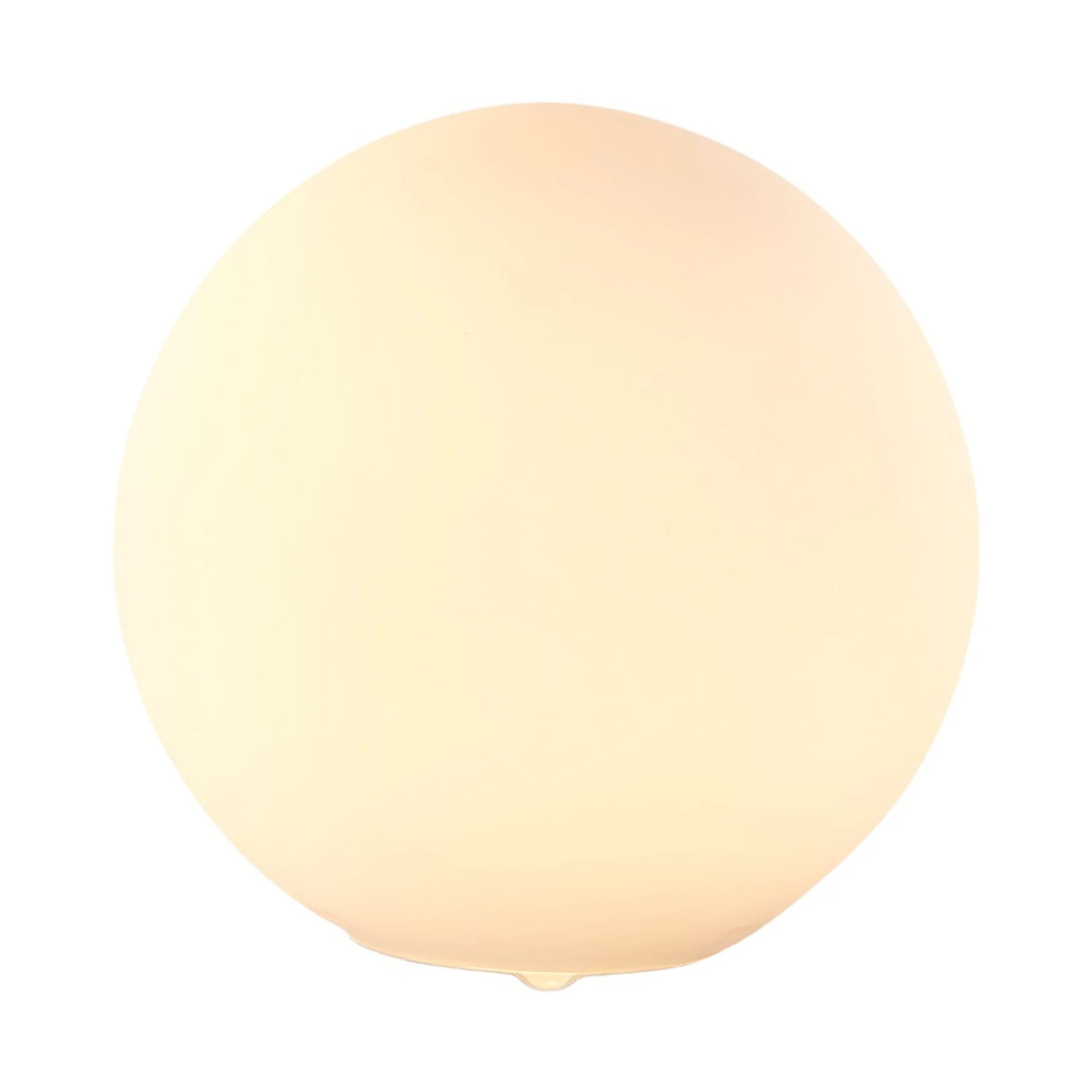 Lampada da tavolo in vetro sferico Rhona Rhona è una lampada da tavolo che può essere collocata quasi ovunque e si adatta a un’ampia varietà di stili. La forma sferica del paralume in vetro bianco opalino è molto universale e non passa mai di moda. La lampada da tavolo è in grado di creare una luce accogliente e può essere collocata in gruppo anche su una cassettiera. Anche quando è spenta, Rhona ha un aspetto elegante e decorativo.