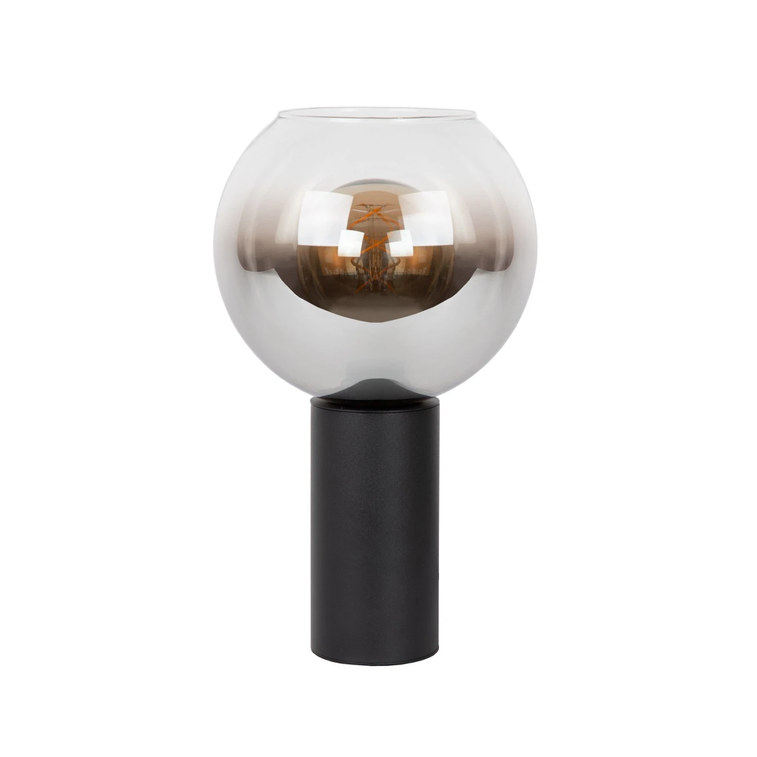 Elegante lampada da tavolo Marius con vetro grigio fuméCome elemento decorativo su una cassettiera o come luce d’accento in camera da letto, la lampada da tavolo Marius ispira per il suo effetto luminoso, creato dal vetro di alta qualità del paralume sferico. Il vetro ha un’accattivante sfumatura di colore ed è colorato di grigio fumo. La luce può fuoriuscire senza ostacoli in tutte le direzioni, illuminando così l’ambiente circostante. Come semplice contrasto, la base cilindrica è completamente nera.