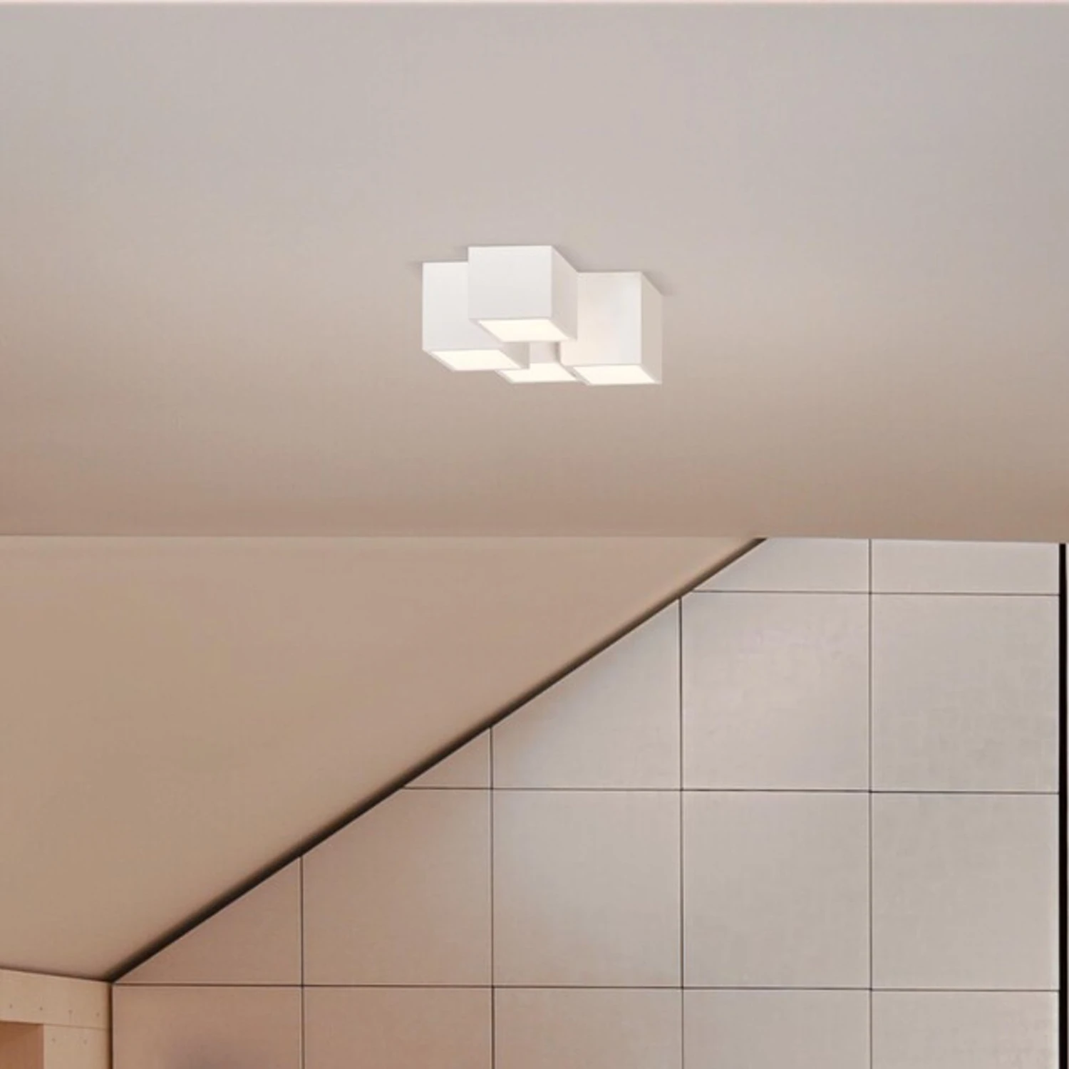 Plafoniera LED Decor Swan con tecnologia SMART WiFi – quattro cuboidi in gesso Il corpo della plafoniera LED Decor Swan è realizzato in gesso e può essere verniciato o lasciato bianco a piacere. Quattro cuboidi di diverse altezze sono allineati qui e si uniscono per formare una struttura angolare che spicca su ogni soffitto. L’apparecchio a soffitto Decor Swan LED ha molto da offrire non solo dal punto di vista estetico, ma anche da quello illuminotecnico, in quanto offre una luce dimmerabile con temperatura di colore regolabile, che può essere controllata tramite app su tablet/smartphone o tramite comando vocale dopo l’integrazione WLAN. – Colore della luce selezionabile da bianco caldo (3.000 K) a luce diurna (6.500 K) – Dimmerabile – Controllo tramite l’app Ledvance SMART – Controllo tramite comando vocale con Amazon Alexa o Google Assistant