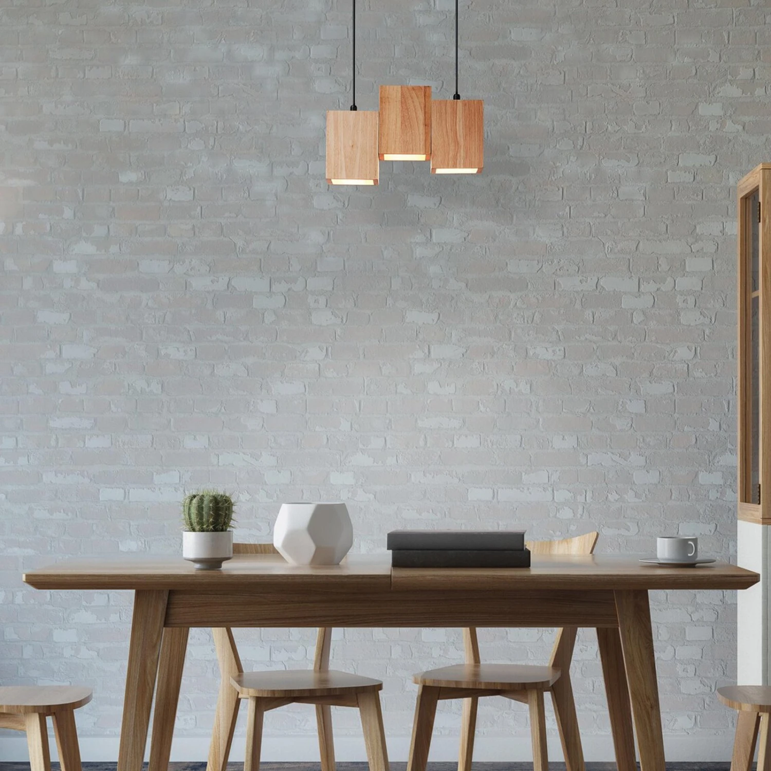 Lampada a sospensione LED Decor Wood con paralume in legno, controllabile in modo intelligente Tre cubi in legno chiaro formano il paralume della lampada a sospensione LED Decor Wood. Sono appesi in modo sfalsato alla calotta angolare e sono dotati di una tecnologia LED avanzata. Ciò consente una regolazione continua della luminosità e della temperatura del colore. Grazie alla tecnologia SMART WiFi, l’apparecchio a sospensione può essere collegato via WLAN e gestito tramite app o comando vocale. – Colore della luce selezionabile da bianco caldo (3.000 K) a luce diurna (6.500 K) – Dimmerabile – Controllo tramite l’app Ledvance SMART – Controllo tramite comando vocale con Amazon Alexa o Google Assistant