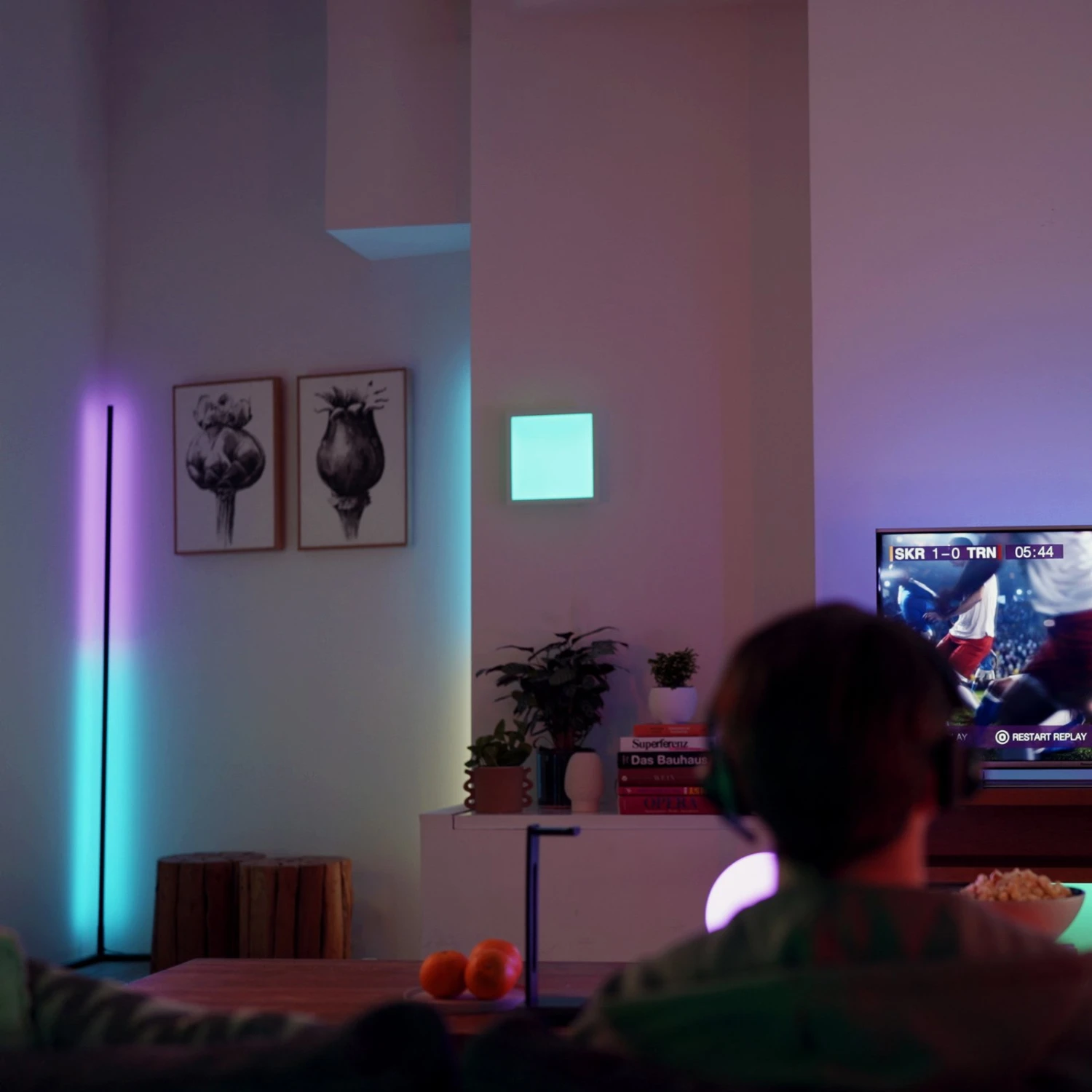 Lampada da terra LED Floor Corner – controllabile con telecomando o smartLa lampada da terra LED Floor Corner è dotata di una base ad angolo retto composta da due montanti, da cui sporge verso l’alto il sottile elemento luminoso. La luce dei LED installati nell’apparecchio sottile si irradia verso la parte posteriore, creando un’illuminazione indiretta. Brilla con luce bianca calda, bianca diurna o colorata e con qualsiasi luminosità. I singoli segmenti possono essere controllati indipendentemente l’uno dall’altro. Si controlla con il telecomando in dotazione o, dopo l’integrazione WLAN, tramite app o comando vocale.- Design chiaro e sottile, abbinabile a molti stili di arredamento- Installazione semplice e veloce- Funzionamento tramite il telecomando in dotazione o tramite l’app SMART WiFi, scaricabile gratuitamente per Android e iOS con funzione DIY: il colore della luce può essere regolato per segmento per creare scene di luce individuali o per utilizzare scene di luce già esistenti.- Funzione ritmo musicale: con l’aiuto dell’App SMART WiFi e dei ricevitori vocali integrati, l’apparecchio risponde a suoni e musica.