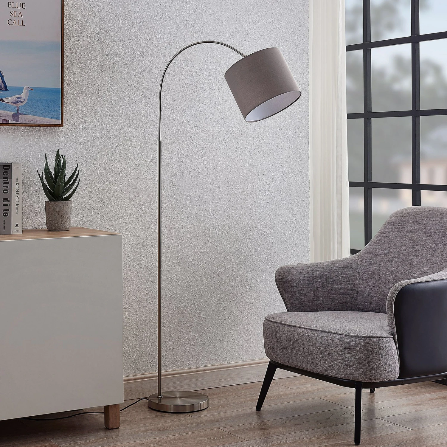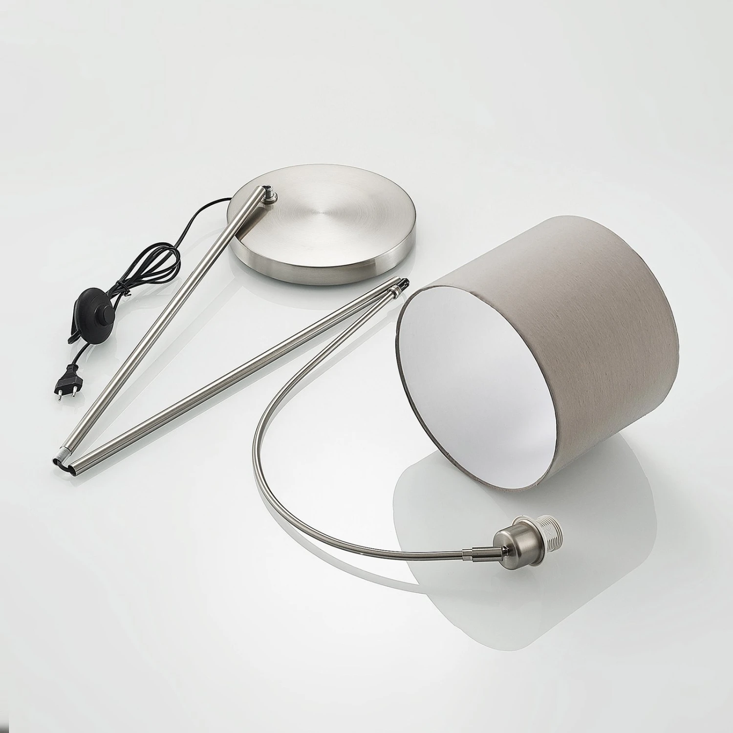 Elegante lampada da terra ad arco Keriba con paralume cilindrico in tessuto color tortora e interruttore a pedale Keriba è la più adatta per l’illuminazione aggiuntiva di un soggiorno o di una camera da letto ed è una lampada da terra dalla discreta forma ad arco, che la rende perfetta per essere posizionata a portata di divano o poltrona e ottima come lampada da lettura. Il suo paralume assomiglia a un cilindro ed è realizzato in un piacevole tessuto nel colore taupe, noto come un’elegante miscela di colori grigio e marrone. La lampada può essere azionata in modo rapido e comodo tramite un interruttore a pedale e il modello di luce è caratterizzato da un elevato fattore di comfort. Poiché il paralume è leggermente orientabile, la direzione della luce è più adattabile.