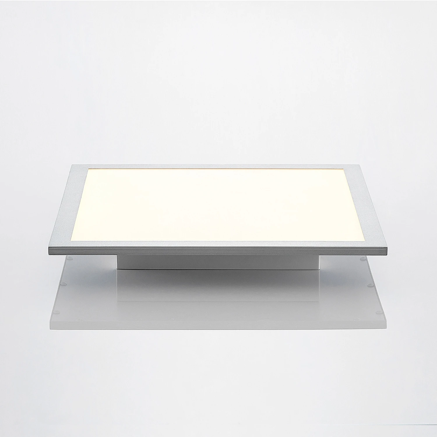 Pannello LED quadrato Kjetil per il settore smart home, RGB, dimmerabile, azionabile tramite app e controllo vocale, telecomando Il pannello LED Kjetil si distingue per la sua altezza ridotta ed è quindi adatto anche a stanze con soffitti bassi. Non solo è possibile scegliere tra tre colori di luce e giochi di colori, ma la plafoniera LED è anche dimmerabile. La plafoniera può essere gestita tramite telecomando, app Tuya Smart e controllo vocale. Il telecomando e l’app hanno anche una funzione di memoria. Funzioni / compatibilità – Controllo tramite telecomando e app Tuya Smart (entrambi con funzione di memoria) – È possibile gestire più luci con la stessa app – Gioco di colori RGB – Dimmerabile in continuo da 1 a 100 % – Temperature di luce regolabili: da bianco caldo (2.700 K) a bianco universale (4.000 K).700 K), bianco neutro (4.000 K) e luce diurna (6.500 K) – Il controllo vocale funziona con Google Home e Amazon Alexa Echo – Modalità notturna (2.700 K dimmerati al 4 %) e modalità a tempo di 30 minuti – A due pulsanti del telecomando possono essere assegnate le impostazioni preferite – WiFi 2,4 GHz