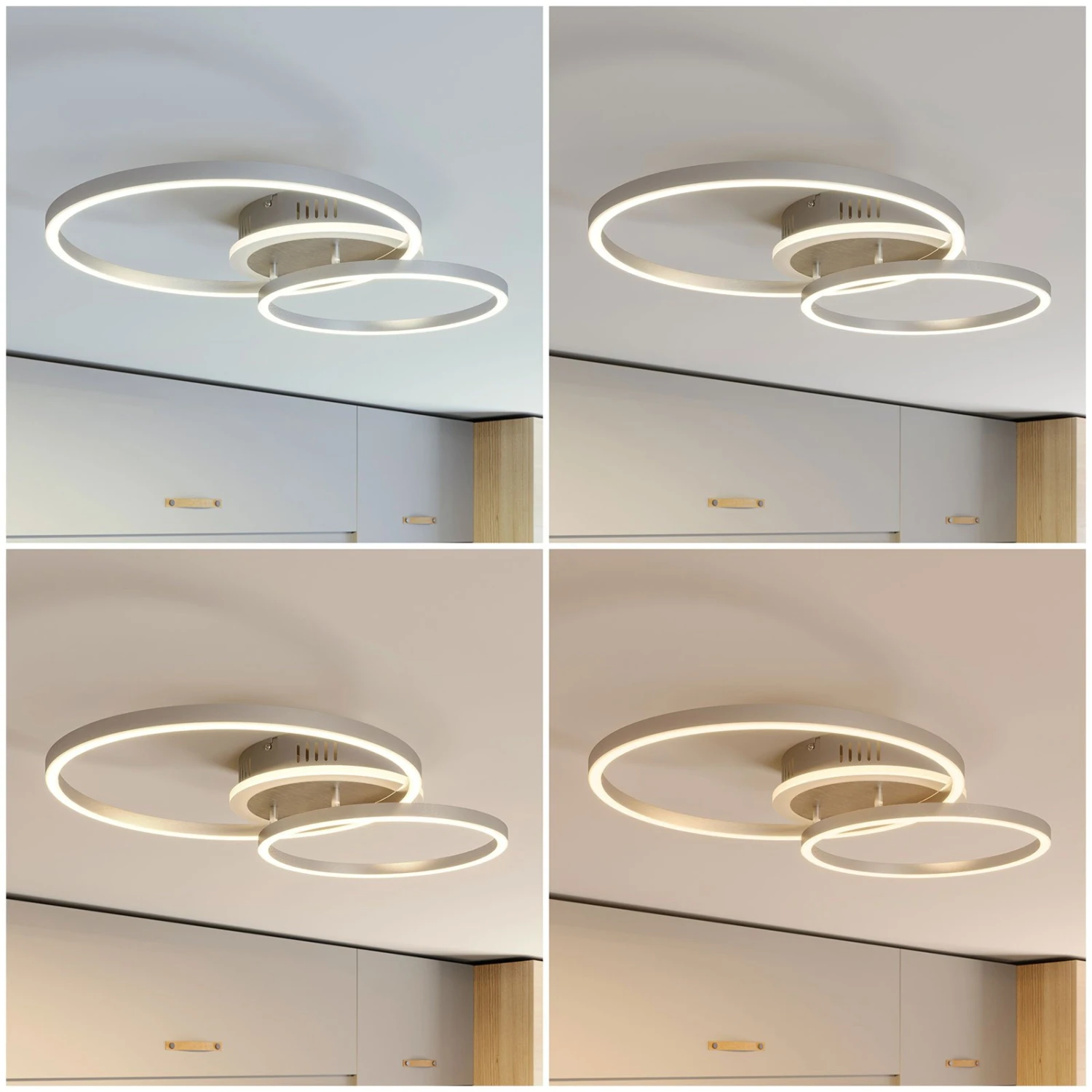 Elegante plafoniera Edica LED con opzione di controllo intelligente tramite app – diversi colori di luce (CCT), dimmerabile, possibilità di controllo vocale Qui potete scegliere: La moderna plafoniera Edica LED può essere comodamente controllata con o senza Internet. Le forme geometriche dell’apparecchio ospitano un’efficiente tecnologia LED, dimmerabile e commutabile in diverse tonalità di bianco. Che si tratti di una luce bianca calda per una serata accogliente o di una luce diurna che favorisce la concentrazione per il lavoro, la plafoniera Edica LED offre entrambe le possibilità. Le impostazioni possono essere effettuate con il telecomando in dotazione, anche senza connessione a Internet. Utilizzando l’app Tuya Smart, disponibile gratuitamente, tutte queste funzioni possono essere comodamente gestite tramite smartphone o tablet. L’utilizzo dell’app offre anche altri vantaggi: programmare la luce in orari specifici, regolare l’intensità luminosa in base all’ora del giorno o controllare comodamente la plafoniera Edica LED con la propria voce. La plafoniera può anche essere integrata in sistemi smart home esistenti e compatibili. Dati tecnici / compatibilità: – controllabile tramite l’app gratuita Tuya Smart (disponibile per iOS e Android) e con il Wi-Fi di casa – compatibile con gli assistenti vocali Amazon Alexa e Google Assistant – controllabile in alternativa senza Wi-Fi e Internet con il telecomando incluso nella fornitura – colore di luce regolabile da bianco caldo (3.000 K) a bianco freddo (6.000 K) – dimmerabile solo tramite l’app o il telecomando incluso nella fornitura