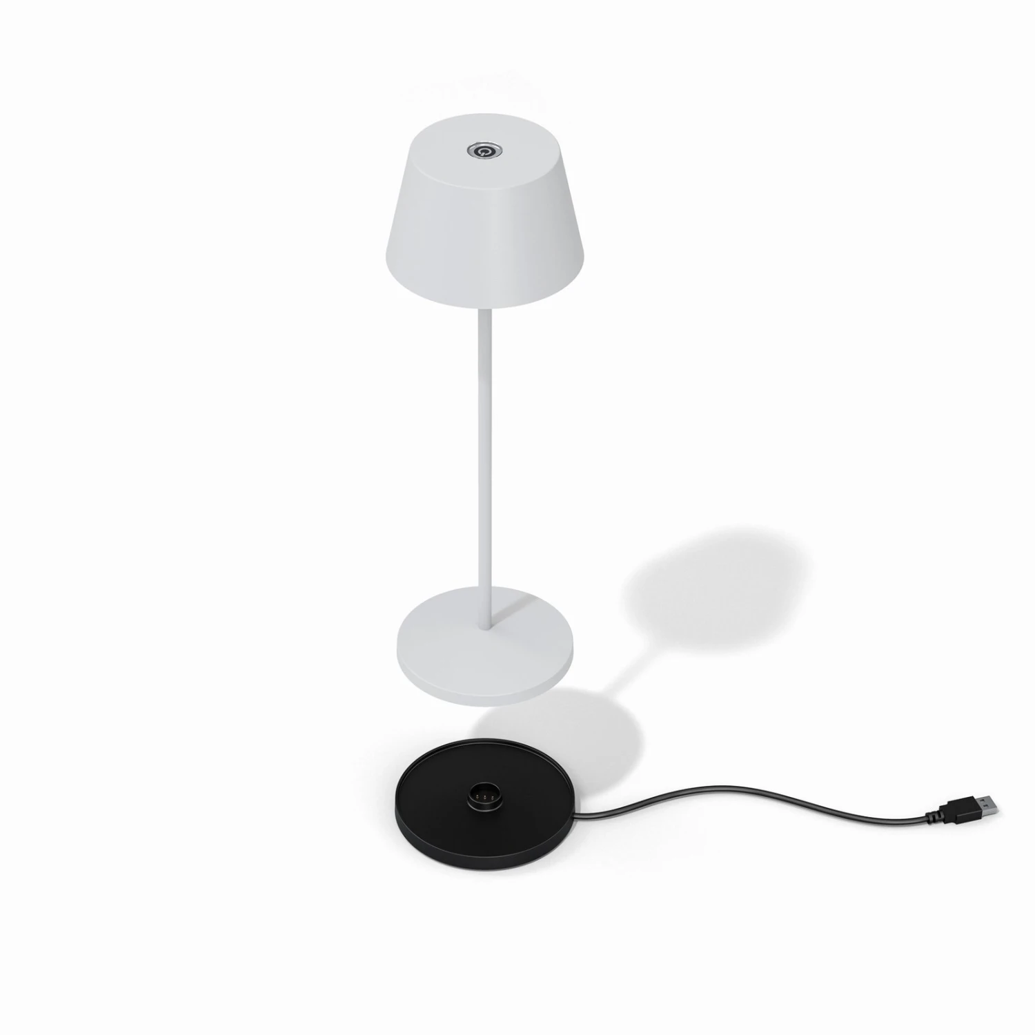 Sul tavolino del soggiorno, in terrazza o alla festa serale in giardino: la lampada da tavolo Modi è un accessorio decorativo e mobile per un’ampia varietà di ambienti e occasioni. Ha una forma senza tempo con base rotonda, braccio sottile e paralume troncoconico. Quest’ultimo è dotato di LED la cui luce bianca calda viene emessa verso il basso. Per il funzionamento è disponibile un interruttore a sfioramento, che consente anche di dimmerare dal 100 al 5% e di modificare la temperatura di colore (2.700 K / 3.000 K). La batteria ricaricabile consente il funzionamento lontano da fonti di alimentazione esterne.