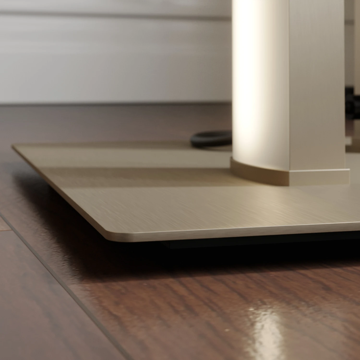 La lampada da terra LED Mairia piace per il dinamismo della sua linea