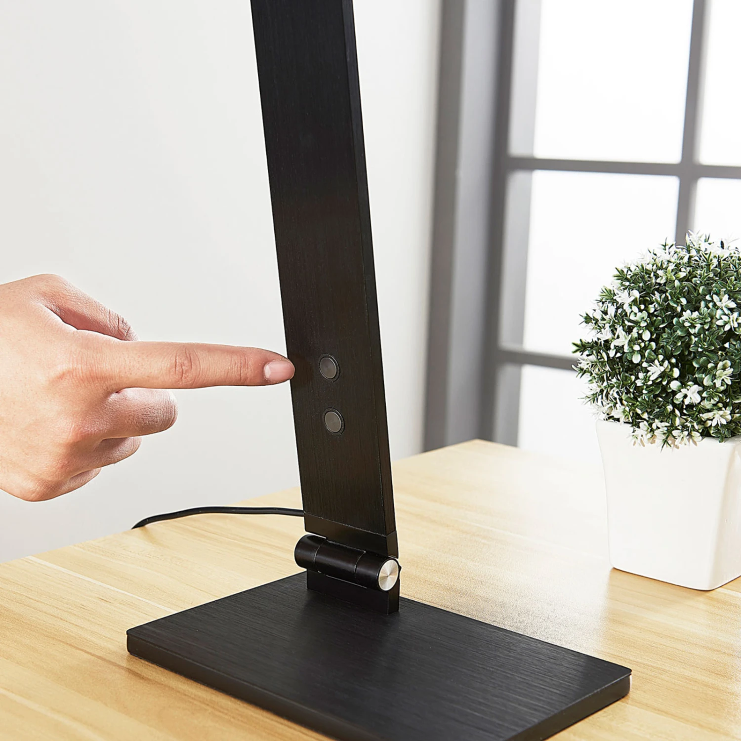 Questa lampada da scrivania a LED nera è dotata di due interruttori a sfioramento, uno per la dimmerazione in quattro fasi, l’altro per la modifica del colore della luce, anch’esso in quattro fasi. Ciò si traduce in un’elevata funzionalità e Salome può essere utilizzato per molti scopi. La luce bianca universale o diurna, ad esempio, è ideale per il lavoro concentrato, mentre la luce bianca calda ha un effetto rilassante e accogliente.