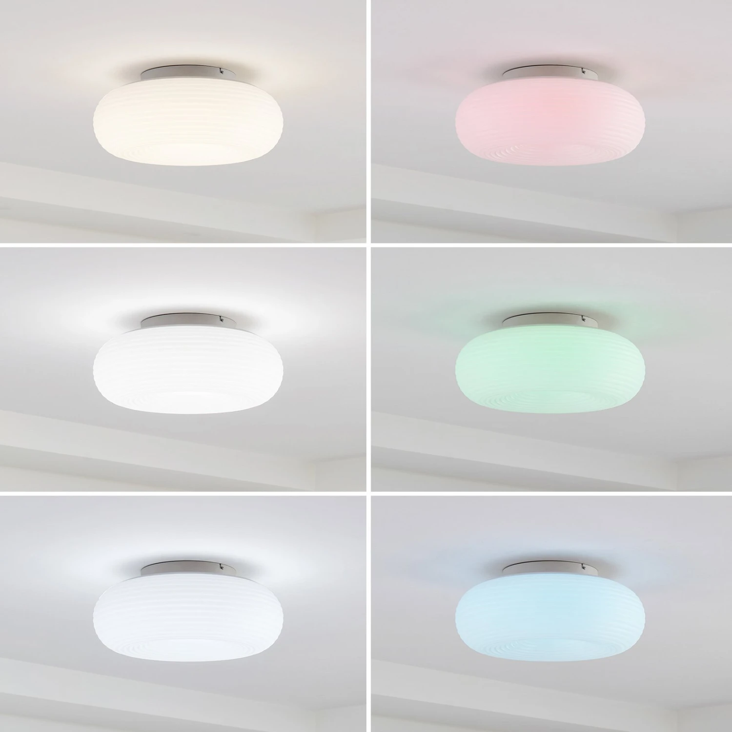Plafoniera Bolti LED di Lucande controllabile in modo intelligente, RGBW La plafoniera Bolti LED rotonda e in plastica è completamente bianca e fatto luce senza abbagliamento nell’ambiente. Sono disponibili numerose opzioni di impostazione, poiché l’apparecchio può essere controllato sia tramite il telecomando in dotazione sia tramite l’app gratuita Tuya. Oltre a modificare il colore della luce nello spettro del bianco, è possibile selezionare diversi colori luminosi o dimmerare la luminosità. L’intera gamma di controlli è disponibile con l’app Tuya, che può essere utilizzata per creare scene, automazioni, programmi e gruppi.