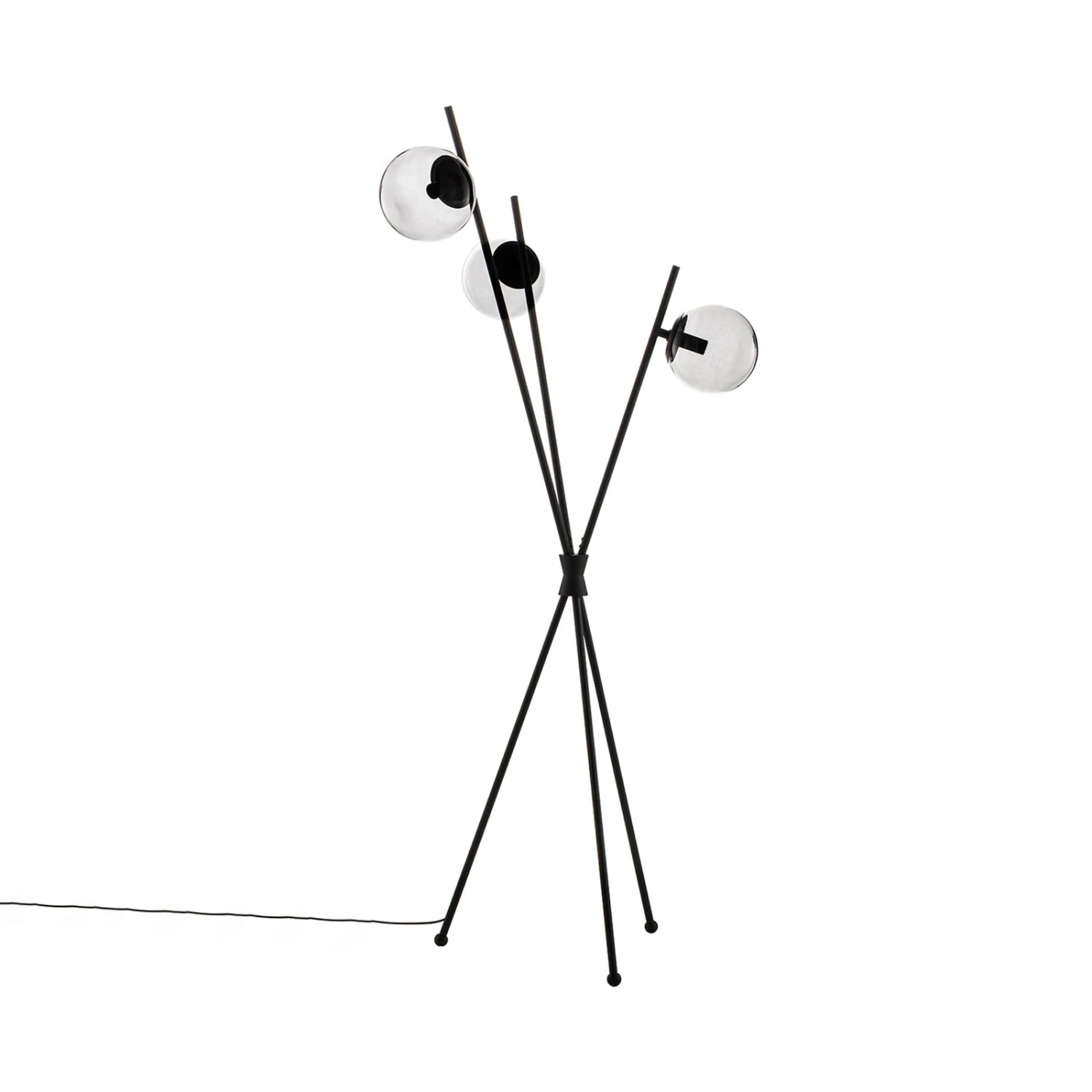 Lucande Sotiana, Lampada Da Terra, 3 Globi Di Vetro, Nero