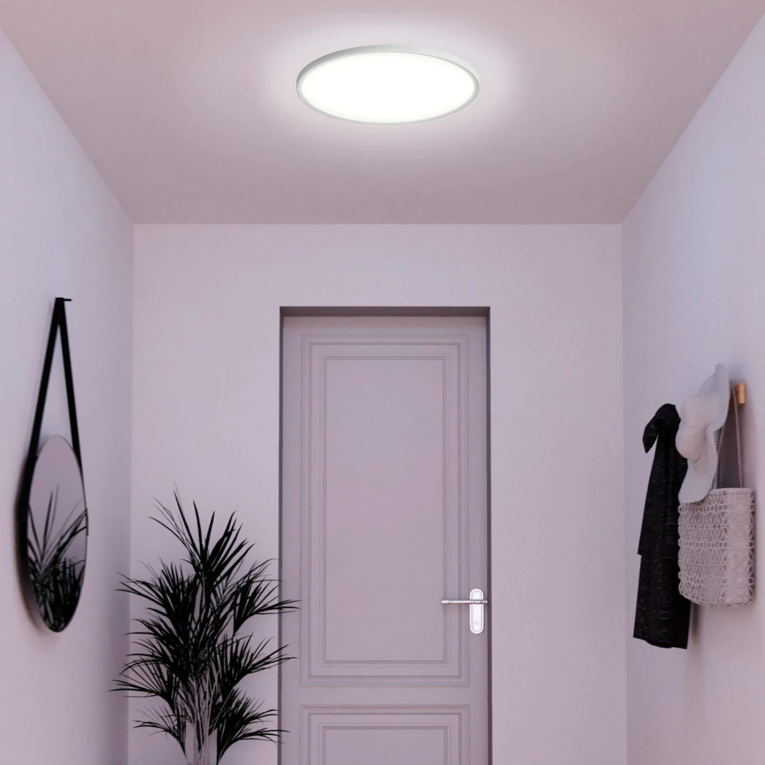 Plafoniera LED Amela a controllo intelligente con funzione CCT e dimmingNella zona giorno, in camera da letto o in ufficio, la plafoniera LED Amela si adatta facilmente a quasi tutti gli ambienti grazie al suo design sottile e alla combinazione di colori senza tempo. La luce alimenta principalmente l’area sottostante l’apparecchio, ma brilla anche all’indietro, creando un bellissimo effetto di illuminazione indiretta. In alternativa, è possibile montare Amela anche come apparecchio a parete. L’apparecchio LED è dotato di numerose funzioni, ad esempio è possibile regolare in modo continuo la luminosità della plafoniera e variare la temperatura di colore da bianco caldo a bianco luce diurna. In questo modo è possibile creare in poco tempo le condizioni di luce adatte a qualsiasi situazione. Inoltre, è possibile attivare scenari di illuminazione esistenti o creare gruppi di illuminazione. Il controllo avviene tramite il telecomando tint (non incluso), tramite app con un sistema smarthome basato su Zigbee, tramite comando vocale o via Bluetooth con l’app tint Smart Light.Funzioni/compatibilità:- controllabile tramite un telecomando tint adatto (vedi accessori)- controllabile tramite app dopo l’integrazione in un sistema smarthome basato su Zigbee (ad esempio Philips Hue, Magenta SmartHome o Samsung SmartThings)- compatibile con l’assistente vocale Alexa (Amazon)- controllabile tramite l’app tint Smart Light via Bluetooth senza dispositivi aggiuntivi- dimmerabile- colore della luce da bianco caldo (1.800 K) a luce diurna (6.500 K)- può essere montata come plafoniera o applique