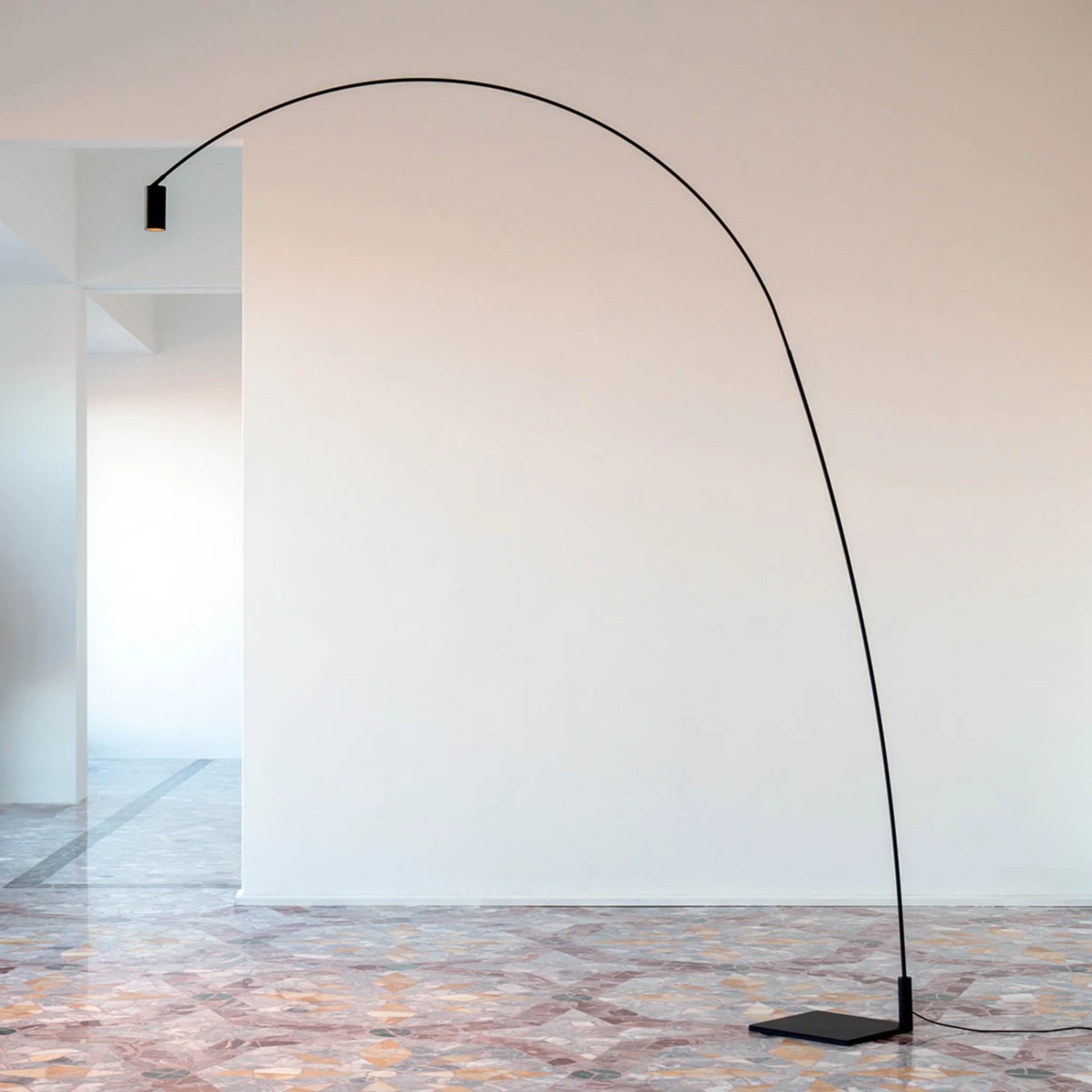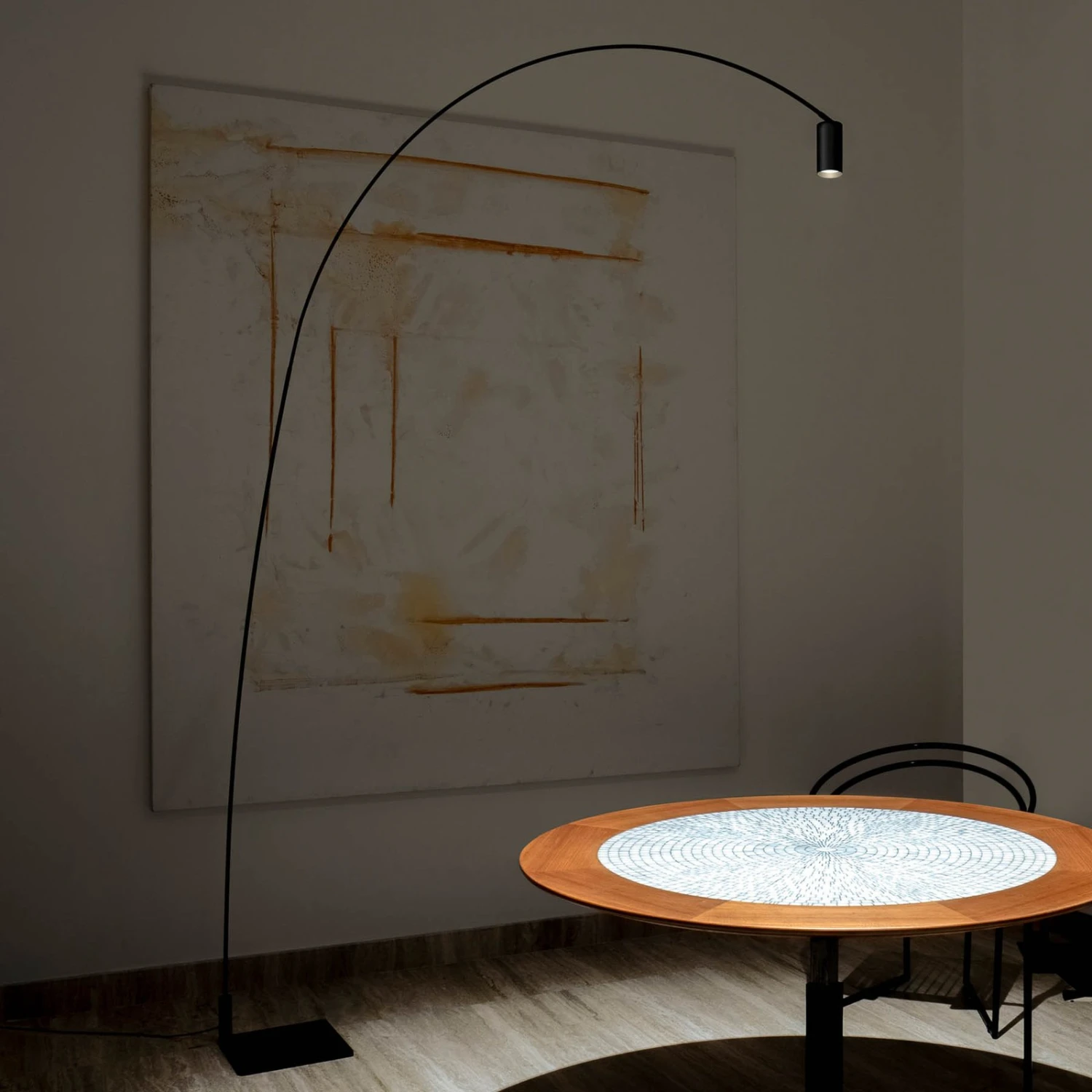 Snella lampada da terra curva Fox con luce regolabile e dimmerabile