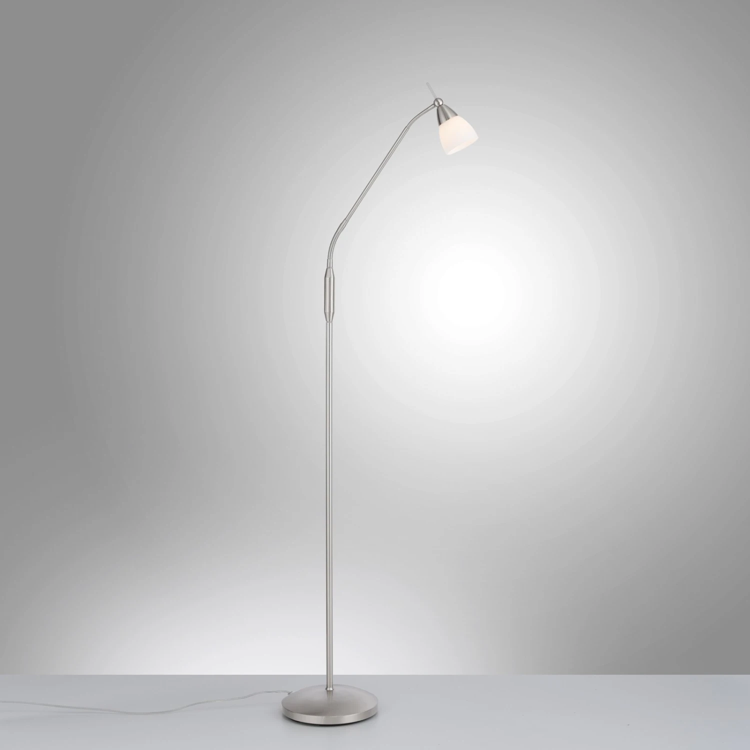 Allineamento flessibile: lampada da terra Pino con dimmer a sfioramento integrato a 3 livelli, 3.000 K La lampada da terra Pino è il perfetto connubio tra eleganza senza tempo e tecnologia moderna. Questa lampada da terra è un gioiello per ogni ambiente. Il suo design si integra perfettamente in vari stili di arredamento. Grazie al pratico dimmer a sfioramento a 3 livelli, avete la possibilità di cambiare la luminosità e quindi di regolare la luce in base alle vostre esigenze individuali. Il vetro opalino garantisce una distribuzione morbida della luce e crea un’atmosfera piacevole. Che si tratti di lettura, relax o lavoro, questa lampada da terra offre sempre la luce giusta. L’apparecchio utilizza una lampadina LED G9 ad alta efficienza energetica che non solo fornisce un’eccellente qualità della luce, ma è anche di lunga durata. Con una temperatura di colore di 3.000 Kelvin, l’apparecchio produce una luce bianca calda che crea un’atmosfera piacevole e accogliente. La testa dell’apparecchio può essere allineata a piacimento e quindi creare accenti mirati.