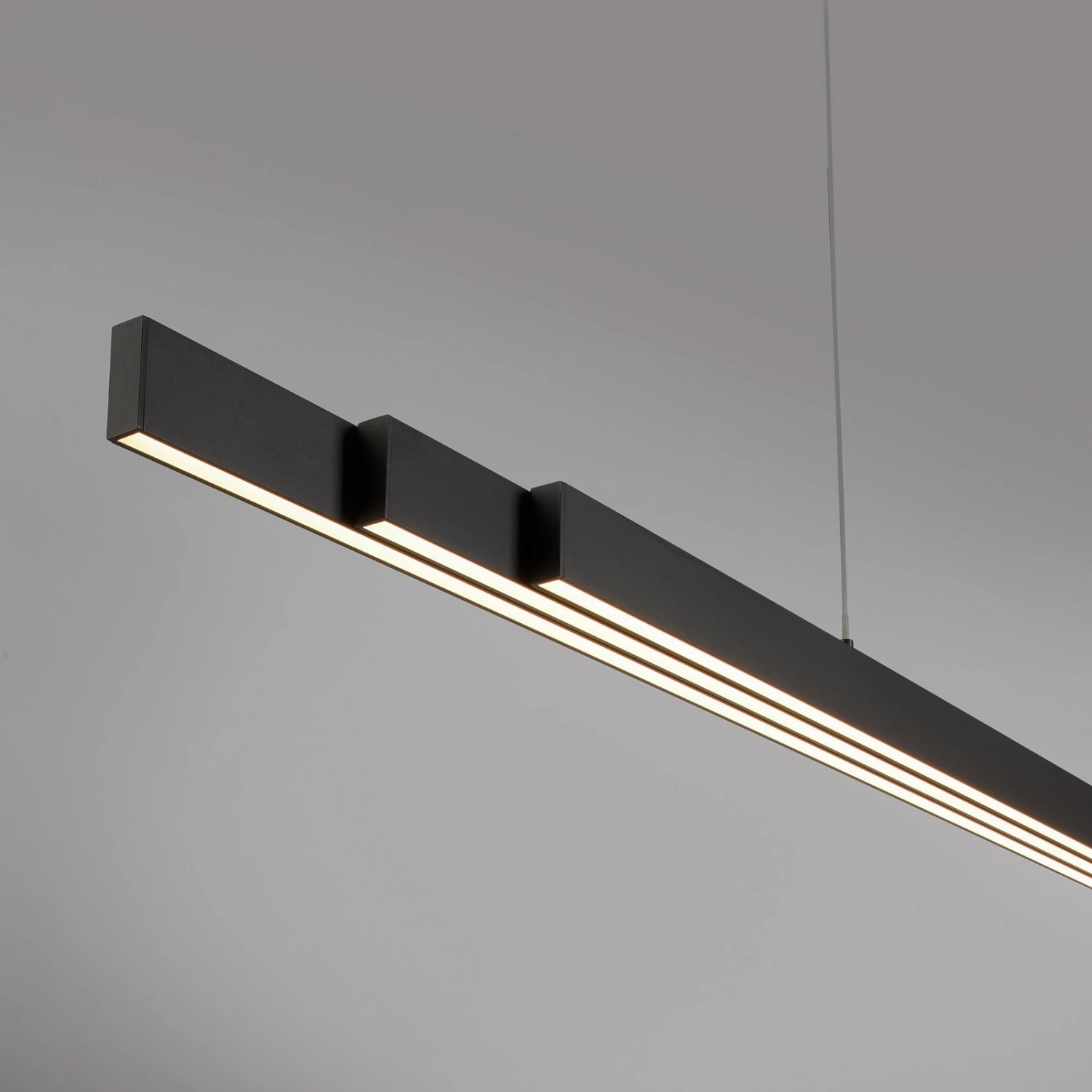 Che sia sopra un tavolo da pranzo o un bancone della cucina, l’apparecchio a sospensione Q-Arian LED offre ovunque momenti radiosi. È composto da un sottile fascio di luce a tre strati e da una delicata sospensione a cavo che permette di regolare l’altezza nel range di 80-120 cm. Il paralume, composto da tre elementi, può anche essere variato in lunghezza facendo scorrere gli elementi a parte. (120 cm – 179 cm)