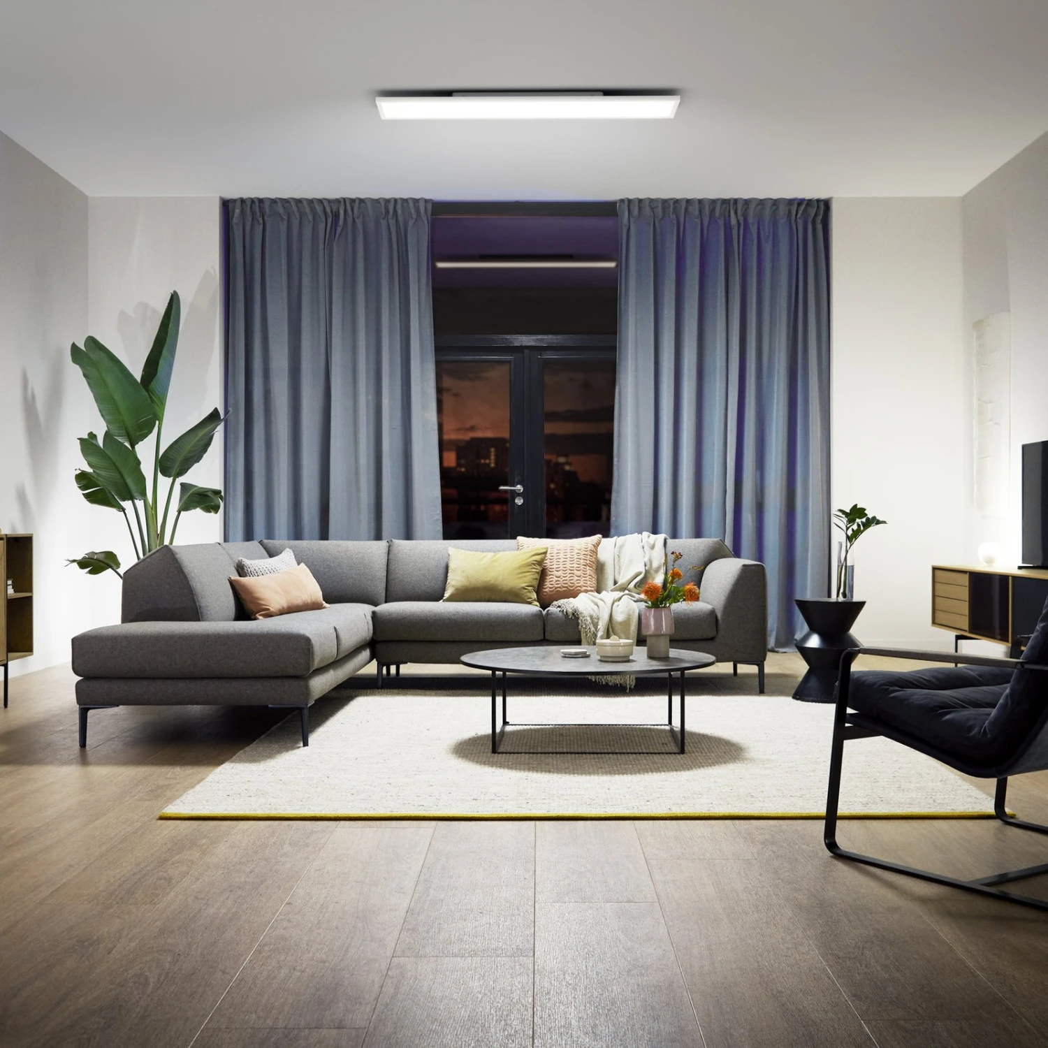 Il pannello a soffitto a LED Philips Hue Aurelle è ideale per l’illuminazione ambientale in molte stanze grazie al suo design a basso profilo e alla potente tecnologia di illuminazione a LED. Può essere controllato sia tramite il dimmer switch in dotazione sia – integrato nel proprio sistema di casa intelligente – tramite l’app Hue con il proprio smartphone o tablet. Oltre a quattro ricette di illuminazione preinstallate, che si trovano sull’interruttore del dimmer, l’app fornisce numerose altre funzioni e modalità. La funzione White Ambience consente inoltre di impostare la temperatura della luce in base alle esigenze (bianco caldo alla luce del giorno). Grazie alla nuova tecnologia, il controllo è possibile anche tramite l’app gratuita Hue Bluetooth, per la quale non sono necessari ulteriori accessori.