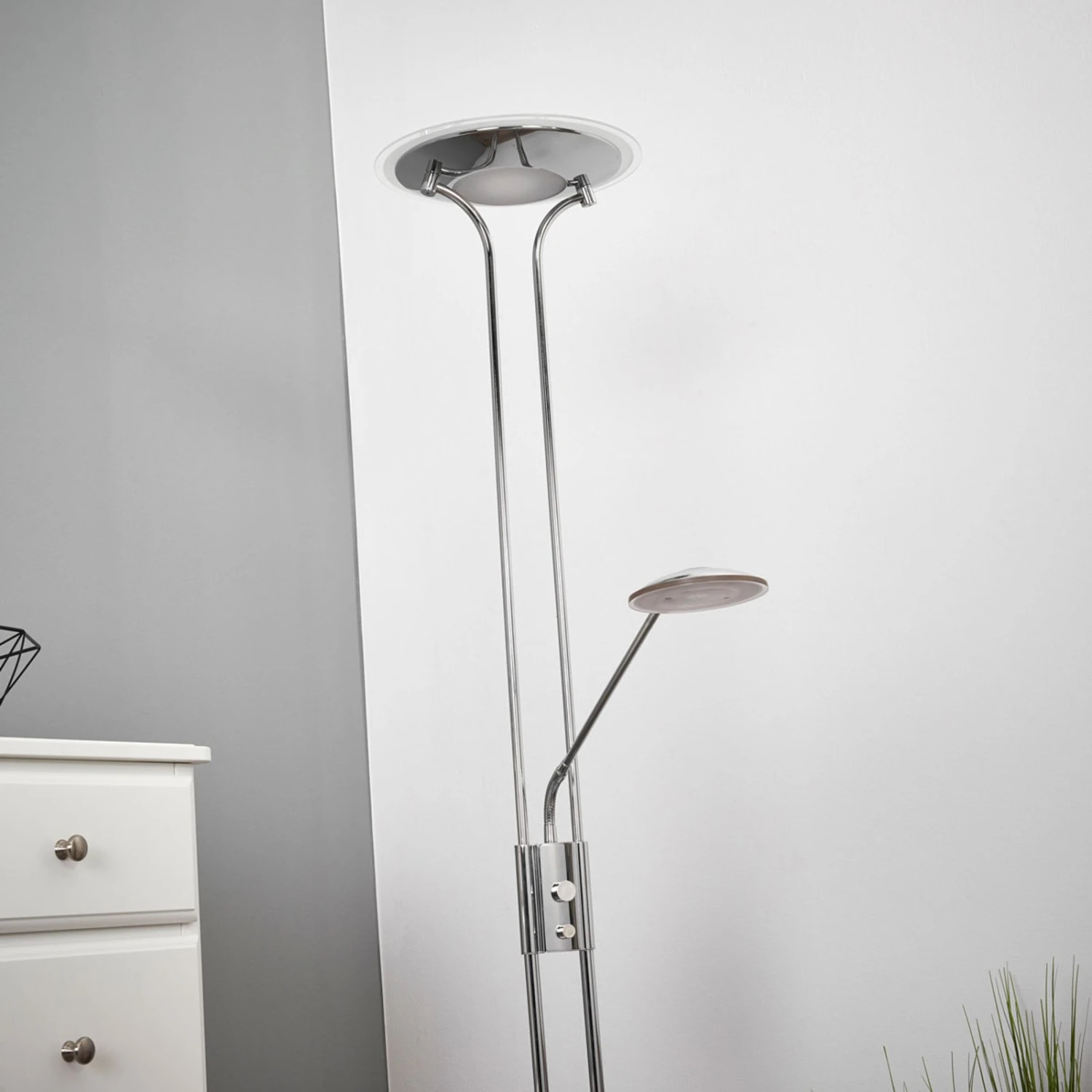 Piantana LED Aras Con Luce Di Lettura, Cromata
