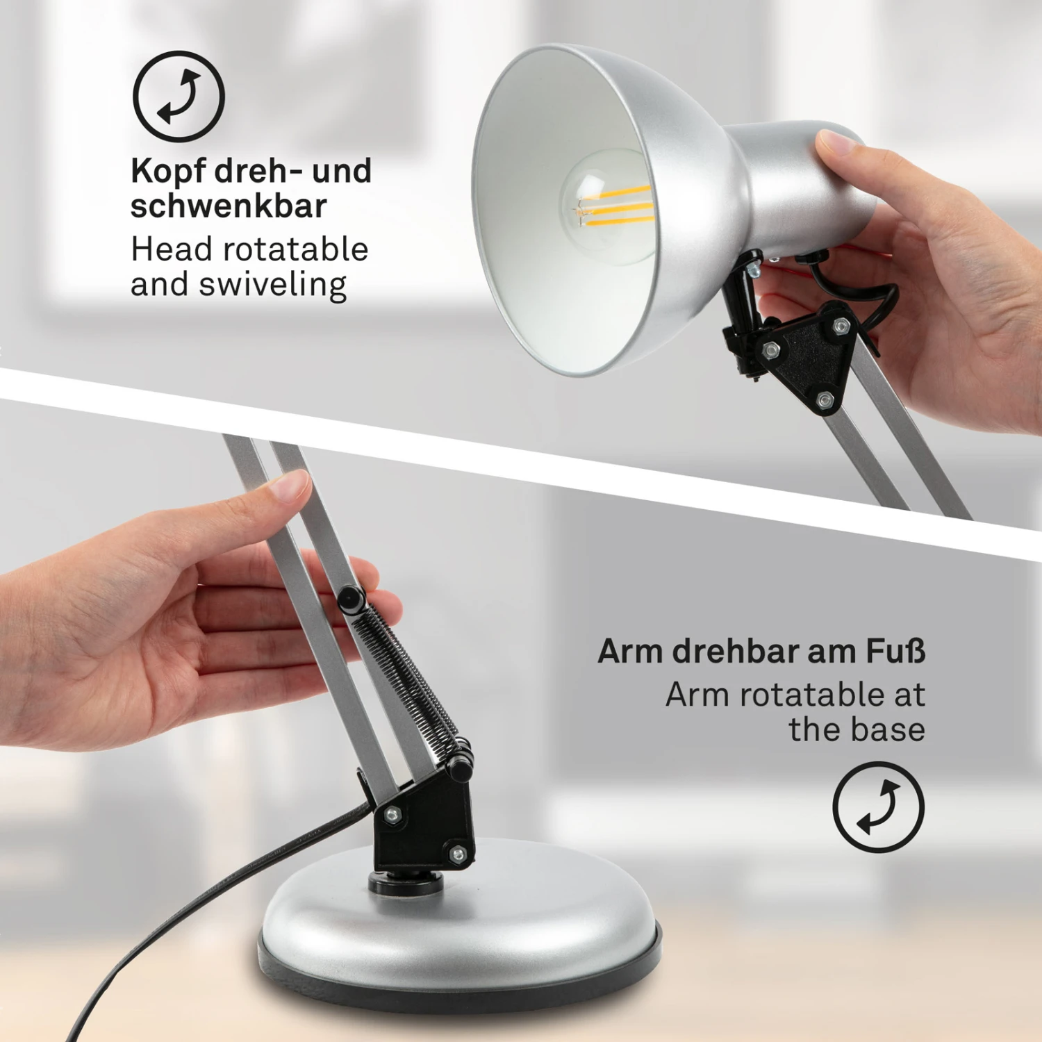 Lampada da tavolo bianca Pixa in stile retrò – regolabileLa lampada da tavolo Pixa ha un design decorativo e ispira un’elevata funzionalità. Le due sezioni della struttura e il paralume possono essere regolati in modo da orientare la luce come desiderato. Per la regolazione vengono utilizzati giunti aperti e meccanismi a molla che caratterizzano l’aspetto di Pixa. Dotata di interruttore sul cavo di collegamento.