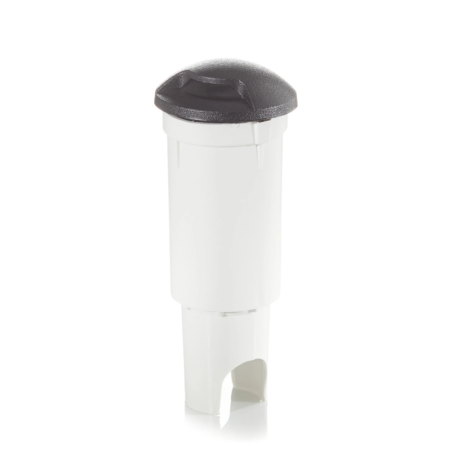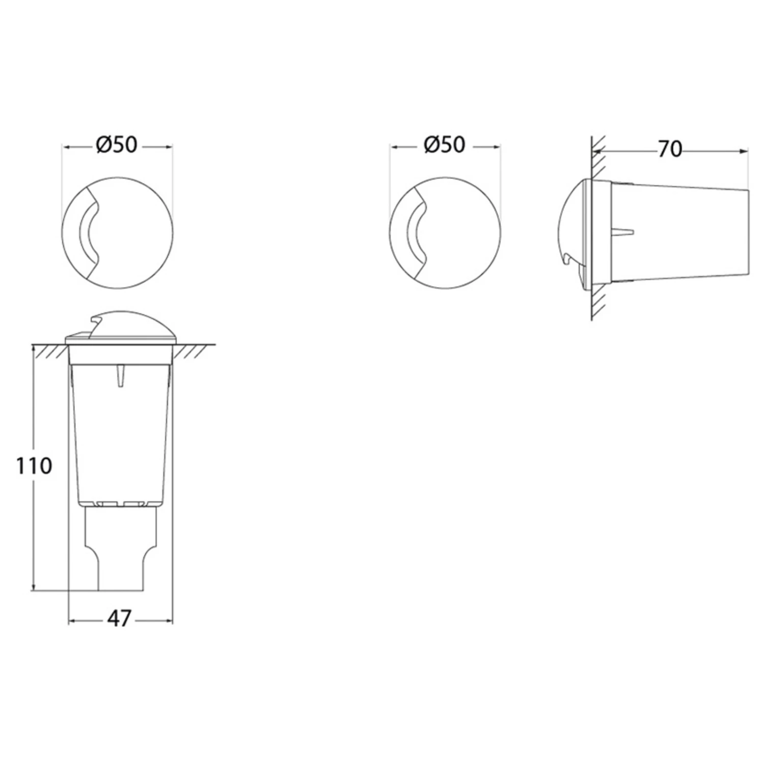In pareti, gradini di scale o pavimenti, l’apparecchio da incasso Aldo fornisce una luce d’accento o di orientamento. L’alloggiamento è fatto di resina fusa resistente, con la parte anteriore visibile in nero. Su un lato c’è una presa di luce leggermente nascosta con una copertura in policarbonato trasparente, dietro la quale c’è la lampada G9 LED bianco caldo.