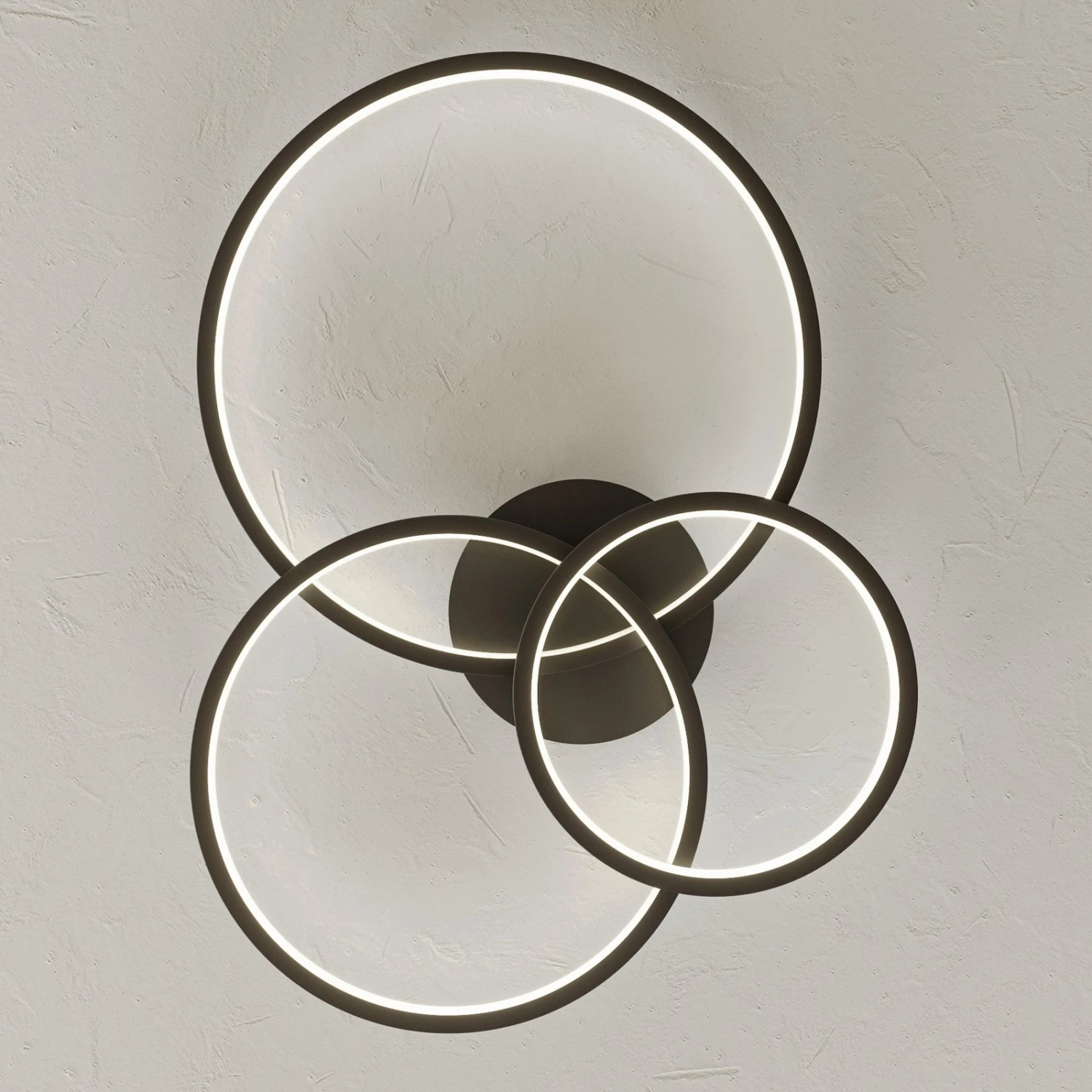Illuminazione moderna e controllabile in modo intelligente – Plafoniera Aaron LED con tecnologia WiZTre anelli di diverse dimensioni si uniscono per formare una struttura geometrica e la moderna plafoniera Aaron LED. Questa offre un’illuminazione luminosa, dimmerabile e priva di abbagliamento in qualsiasi ambiente, che può essere controllata anche tramite il telecomando in dotazione, un’app adatta o un assistente vocale. Funzioni/compatibilità:- controllabile con il telecomando a infrarossi WiZ in dotazione- controllabile via WLAN con l’app WiZ abbinata- compatibile con gli assistenti vocali Amazon Alexa o Google Home- dimmerabile solo tramite l’app, il telecomando o il dimmer integrato nell’apparecchio- da bianco caldo (3.000 K) a luce diurna (6.000 K)- cambio colore RGBW- funzione memoria