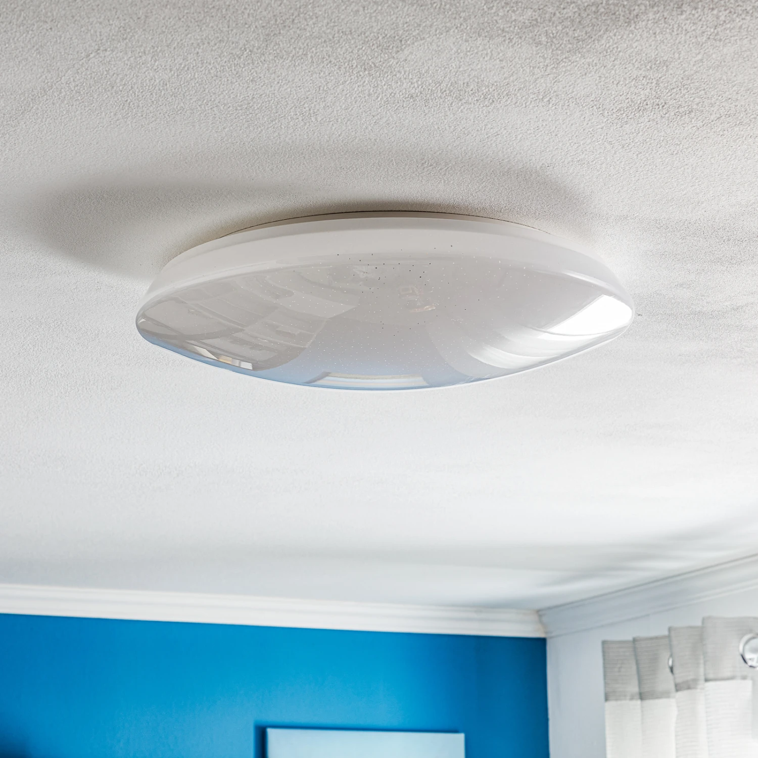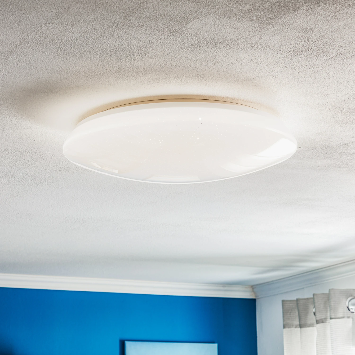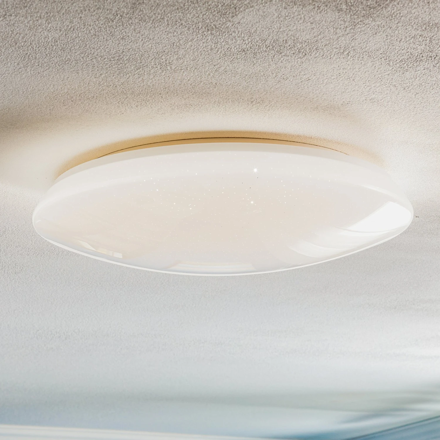 Plafoniera Charly LED controllabile con effetto cristallo e funzione luce notturnaGrazie alla moderna tecnologia WiZ, la plafoniera Charly LED può essere controllata con un’app, un assistente vocale o anche con il telecomando in dotazione. Basata su un design semplice e rotondo, è dotata di un effetto cristallo scintillante, che si rivela molto bene quando la luce è accesa. In termini di applicazione, l’apparecchio è ideale, ad esempio, in camera da letto, in quanto la luce notturna è comodamente accessibile tramite il telecomando con la semplice pressione di un tasto. Grazie a WiZ, Charly può essere collegato all’apposita app WiZ tramite la WLAN di casa. Qui sono possibili molte funzioni, tra cui l’impostazione di modalità di luce dinamiche. Che si tratti di diverse tonalità di bianco o di una selezione tra innumerevoli sfumature di colore, l’app non pone praticamente limiti alla creatività.Funzioni/Compatibilità:- Impostazione di programmi di luce dinamici a partire da 16 milioni di colori- Creazione di programmi di luce e gruppi di apparecchi- Modifica della temperatura della luce (64.dimmerazione senza installazione aggiuntiva- Accesso WiFi remoto tramite connessione cloud criptata (non sono necessari bridge o hub)- Controllabile tramite app WiZ (smartphone o tablet), interruttore della luce, telecomando WiZ (incluso) o tramite controllo vocale (Amazon Alexa o Google Home)