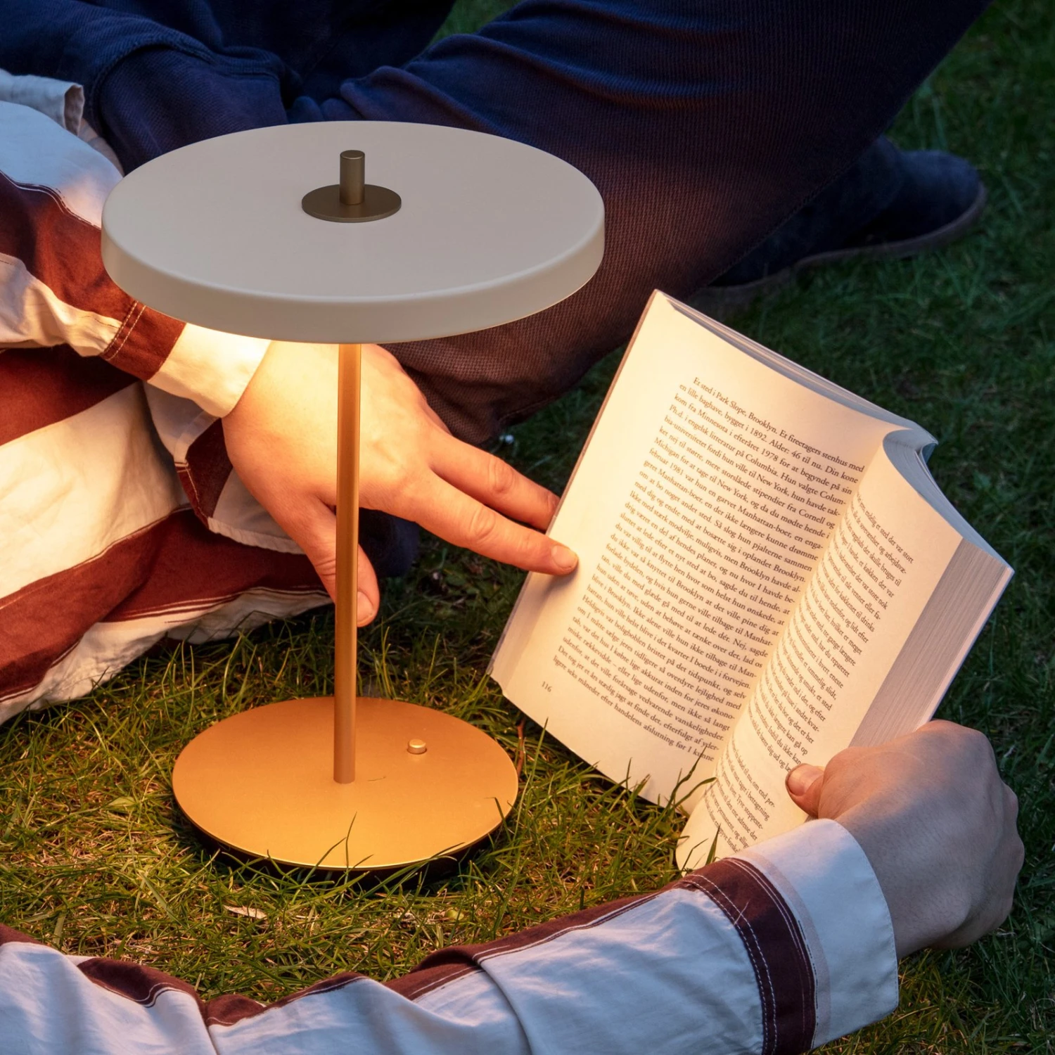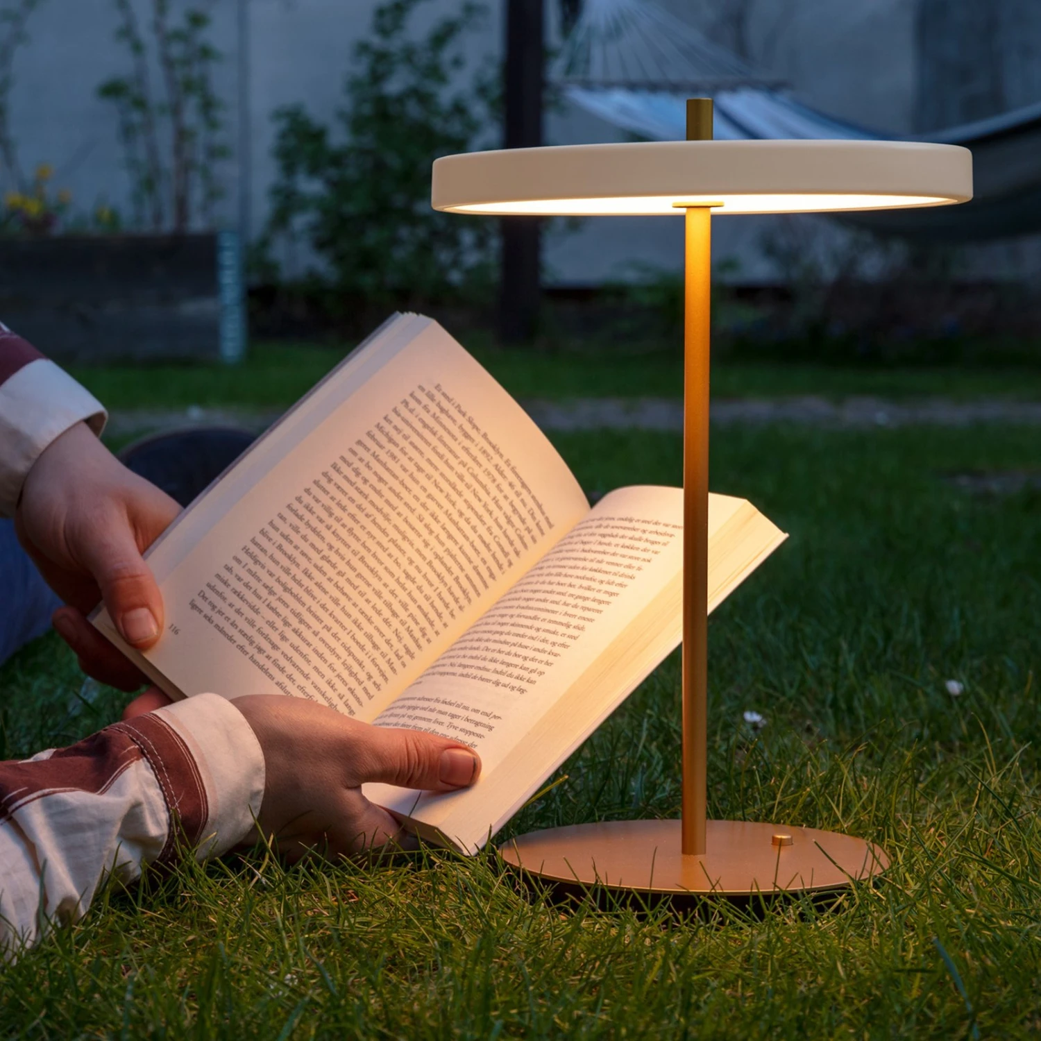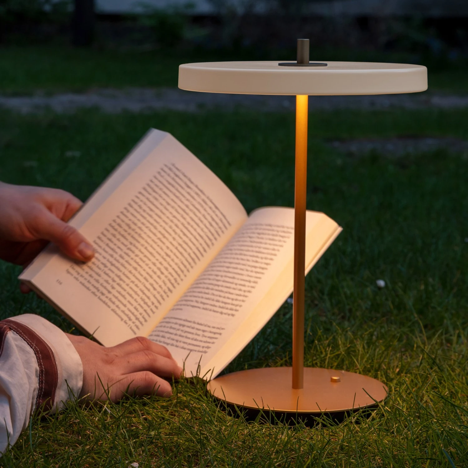 Lampada da tavolo a LED Asteria Move con batteria per funzione portatile Graziosa e dotata di un’incredibile libertà di movimento, la lampada da tavolo a LED Asteria Move della casa di design danese UMAGE può essere utilizzata ovunque in casa. Grazie alla batteria agli ioni di litio incorporata, la lampada può fornire luce per un massimo di 35 ore in media senza collegamento alla corrente. Il paralume rotondo ospita LED bianchi caldi che emettono una luce accogliente e confortevole, distribuita senza abbagliare, in modo morbido e uniforme su tutti i lati dal diffusore integrato. Tramite il dimmer a sfioramento sul supporto altrettanto rotondo e massiccio, la luce può essere regolata in quattro diversi livelli di luminosità premendo più volte l’interruttore. La collezione Asteria è stata progettata dal co-fondatore e Chief Creative Developer, Søren Ravn Christensen. Il designer è un autodidatta e ha il raro dono di combinare design ed economia. A proposito della sua collezione, egli stesso afferma: “La collezione Asteria, creata all’incrocio tra design, tecnologia e artigianato, presenta luci LED integrate in una forma elegante e minimalista”. Insieme all’attuale amministratore delegato, Jacob Nannestad Hansen, Christensen ha fondato la società UMAGE by VITA copenhagen nel 2008. I produttori di lampade di design pongono particolare enfasi sui materiali sostenibili e sulla tecnologia di alta qualità nella produzione delle loro lampade, al fine di offrire al cliente il massimo vantaggio possibile. Il concetto ha avuto successo. Oggi, infatti, l’azienda danese di illuminazione è rappresentata in più di 50 Paesi del mondo con oltre 1.500 filiali – portatile – a batteria – luminosità regolabile in quattro fasi: 1° fase 5 lumen circa 168 ore 2° fase 20 lumen circa 50 ore 3° fase 50 lumen circa 20 ore 4° fase 100 lumen circa 10 ore