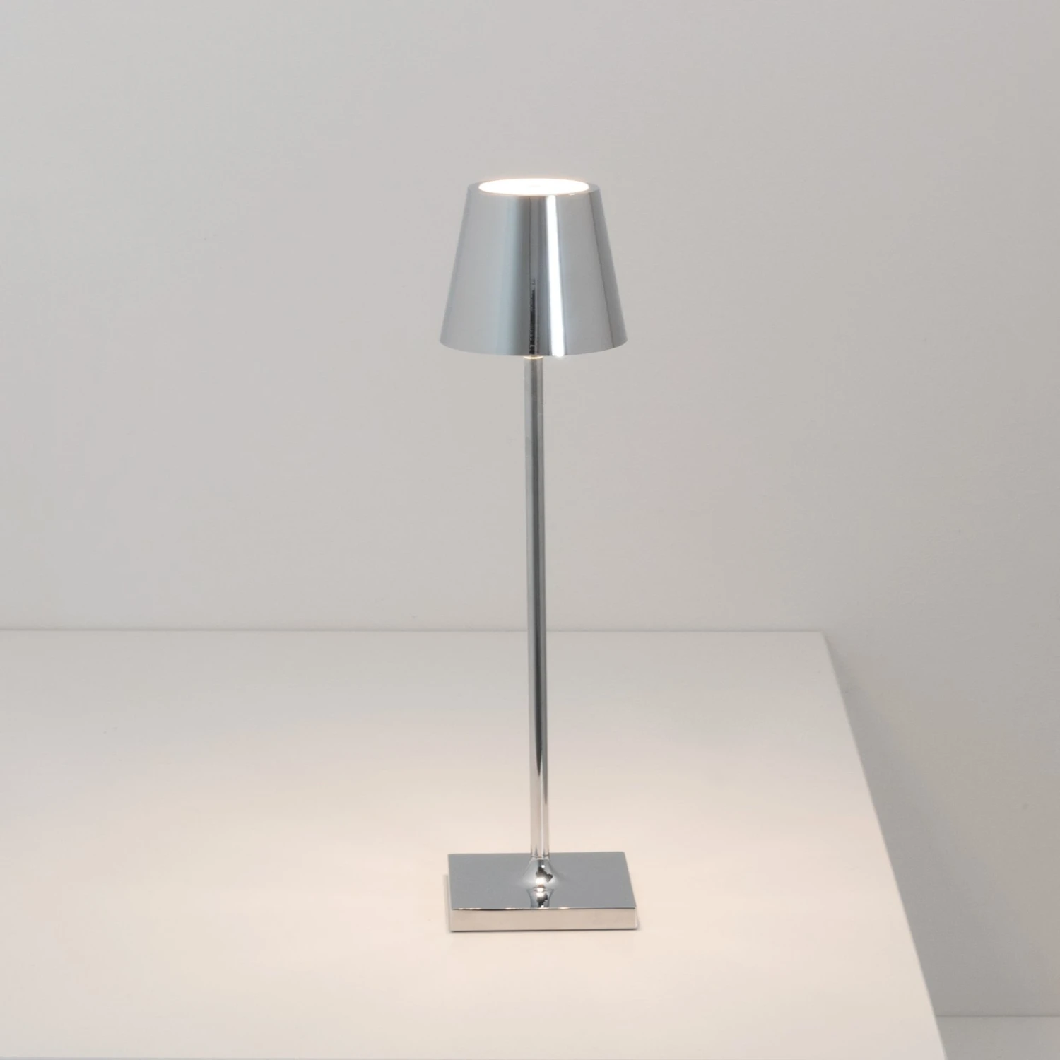 Poldina micro: lampada da tavolo a batteria LED come compagna per ogni ambienteCon il suo design moderno e minimalista, la lampada da tavolo a batteria LED Poldina micro si adatta a qualsiasi interno e crea un’atmosfera piacevole. A causa del design del paralume, l’apparecchio è adatto solo per uso interno, nonostante il grado di protezione IP65. La ricarica wireless con il pad di ricarica in dotazione rende Poldina micro particolarmente pratica. È dotata di due temperature di colore in bianco caldo e di un dimmer a sfioramento che consente di regolare individualmente la luminosità. Con un tempo di illuminazione di 7-8 ore e un tempo di ricarica di sole 3-4 ore, la lampada è mobile e può essere utilizzata in qualsiasi punto della stanza. Il driver non è incluso nella fornitura.
